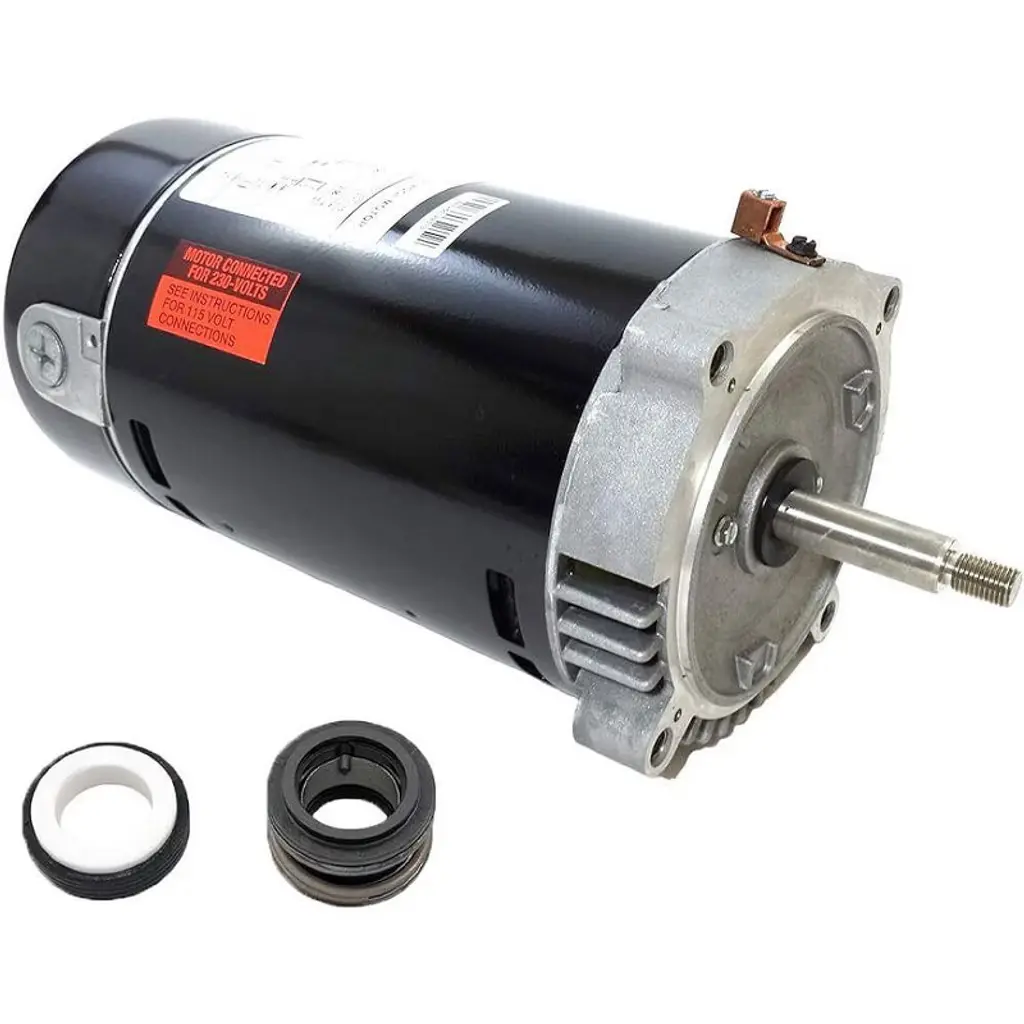 The A.O. Smith Replacement C-Face Motor 1.5HP Full-Rated Single-Speed is a high-quality motor designed to offer dependable and efficient performance for pool and spa equipment. This motor is built to meet rigorous operational demands, making it an ideal choice for replacing existing pool pump motors. Here’s a detailed overview of its features and benefits:Power and Performance: With a 1.5 horsepower rating, this motor delivers strong and steady power, ensuring that your pool or spa’s filtration and circulation systems run smoothly and effectively. It's capable of handling high-demand situations, providing consistent performance that owners can rely on.Full-Rated Efficiency: As a full-rated motor, it offers higher efficiency and longevity compared to up-rated models. This means the motor operates at its advertised horsepower with a higher service factor, translating into less wear and more durability over time.C-Face Mounting Compatibility: This motor features a C-face mount, making it widely compatible with most existing setups. The C-face mount is designed for direct mounting to the pump housing, which helps reduce installation time and ensures a secure fit.Single-Speed Simplicity: The single-speed functionality makes this motor straightforward to operate, eliminating the complications associated with variable-speed models. This simplicity is beneficial for many pool and spa systems where a consistent water flow is necessary.Built for Durability: Constructed with high-quality materials, the motor is designed to withstand the harsh conditions typically found in pool and spa environments, including chemical exposure and high humidity.Quiet Operation: Engineered to operate quietly, this motor helps maintain a peaceful outdoor environment, allowing you to enjoy your pool or spa without the distraction of loud mechanical noises.Energy Efficiency: While providing powerful performance, this motor also focuses on efficiency. It's designed to use electricity effectively, helping to keep operating costs down without sacrificing power.Reliability and Trust: Manufactured by A.O. Smith, a leader in motor technology, this motor is backed by a legacy of quality and reliability. Known for crafting durable and efficient motors, A.O. Smith ensures that this product meets the high standards expected by consumers.This A.O. Smith Replacement C-Face Motor is not just a replacement part; it is an upgrade to your pool or spa's efficiency and reliability. Whether you are replacing a worn-out motor or upgrading for better performance, this 1.5HP full-rated single-speed motor is an excellent choice that promises longevity and top-notch performance.