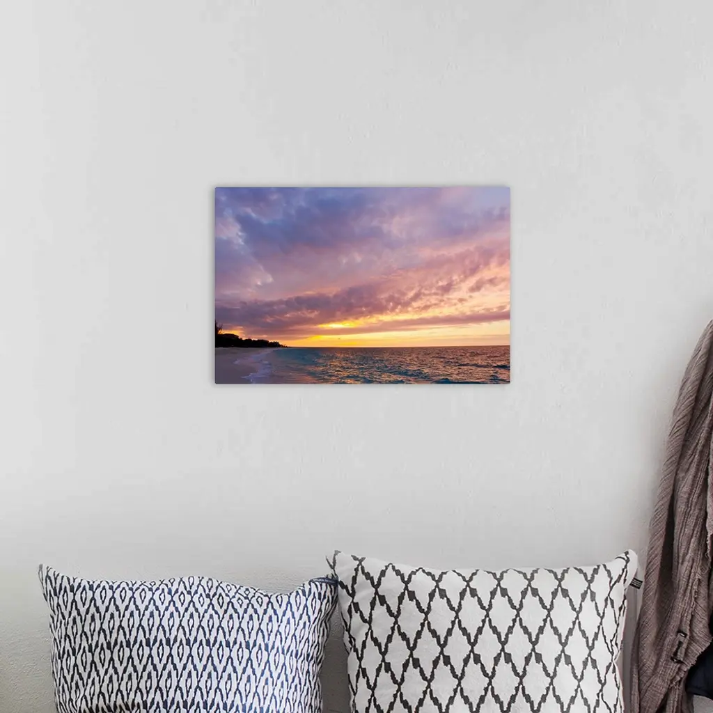 A Purple And Pink Sky At Sunset Over Grace Bay And The Beach