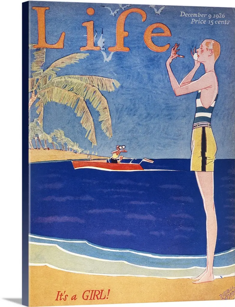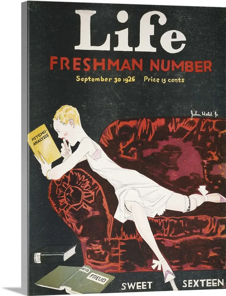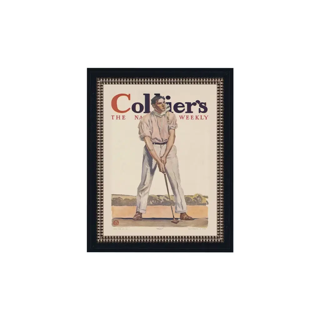 Original New Yorker cover from August 1, 1988. Based on an illustration by the English artist and satirical cartoonist Ronald Searle (1920-2011). Displayed in a conservation mat in a black metal frame under ultraviolet conservation glass. Image: 8"L x 11"H; overall: 13"L x 16"H. This beautifully framed original New Yorker cover arrives ready to hang. Includes a certificate with additional information and a brief history of New Yorker magazine cover art.