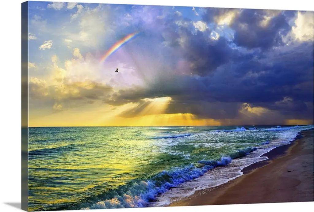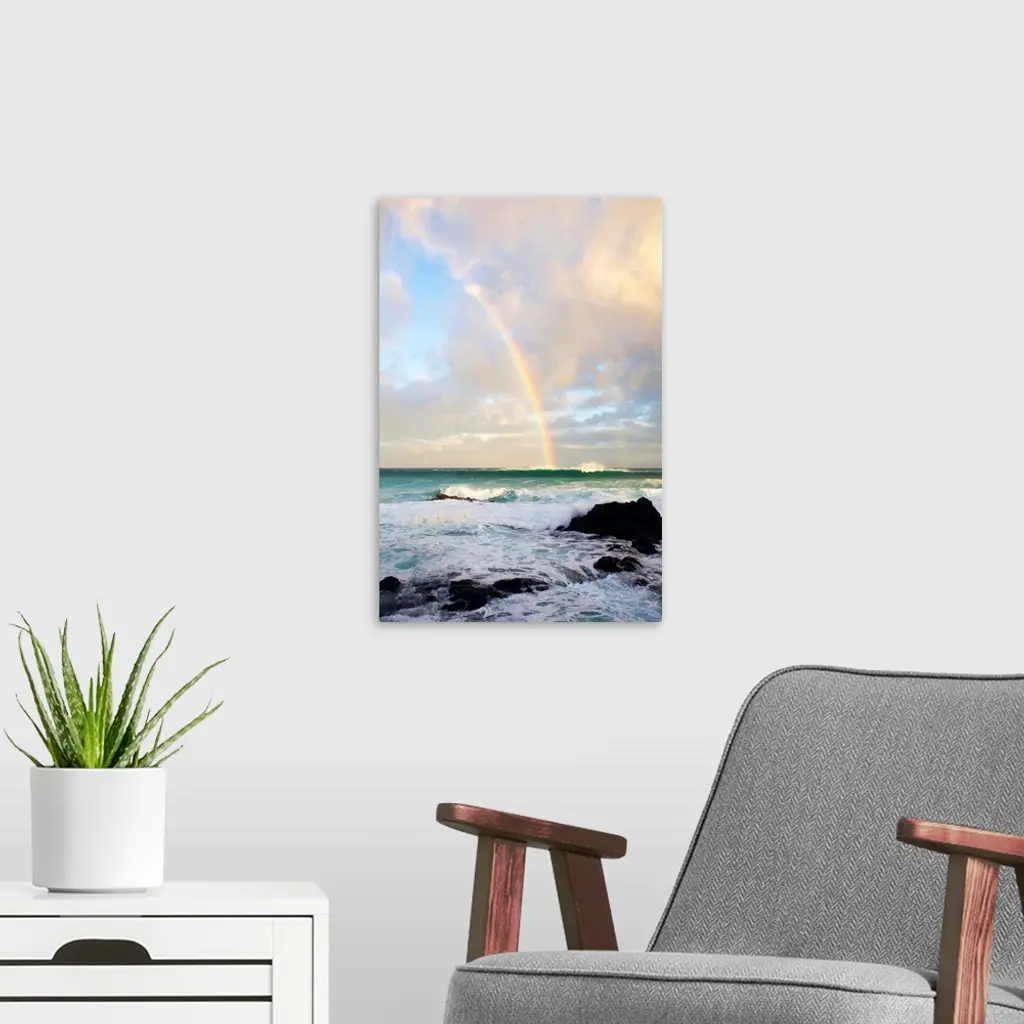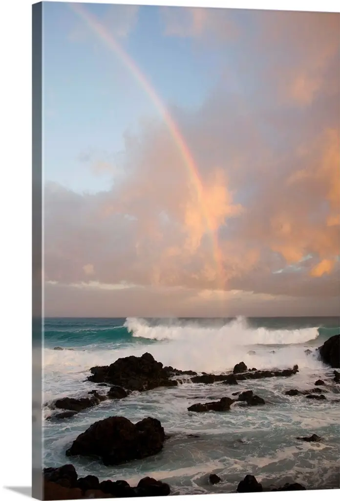 A Rainbow Crosses The Sky Over Ocean Waves, Hawaii wall art for home and office decor. Discover canvas art prints, photos, mural, big canvas art and framed wall art in GreatBigCanvas.com's varied collections.