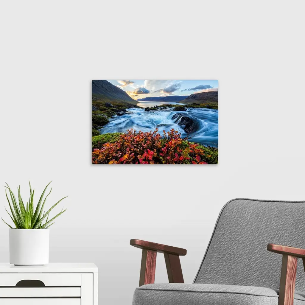 A River Flows Through The Landscape On The West Fjords; Iceland