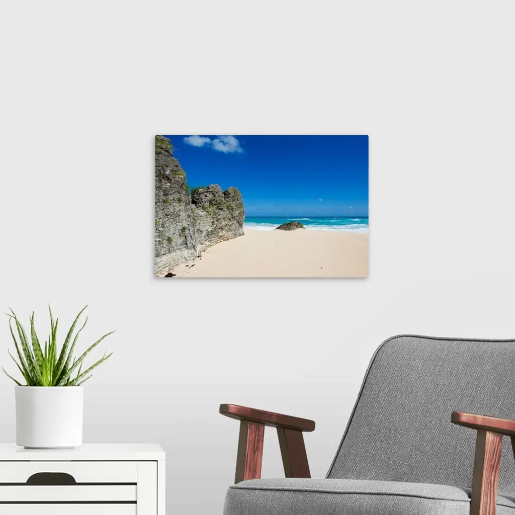A Rock Cliff At A Small Beach On The South Side Of Bermuda