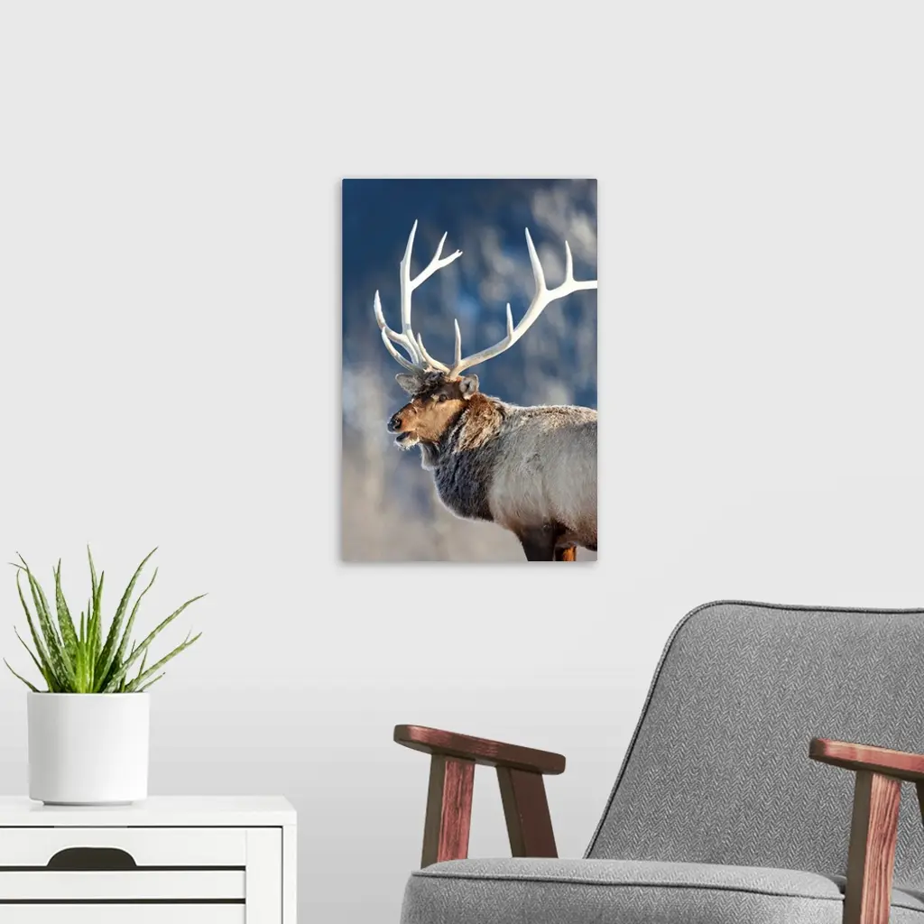 A rost covered Rocky Mountain Elk, Southcentral Alaska, Winter wall art for home and office decor. Discover canvas art prints, photos, mural, big canvas art and framed wall art in GreatBigCanvas.com's varied collections.