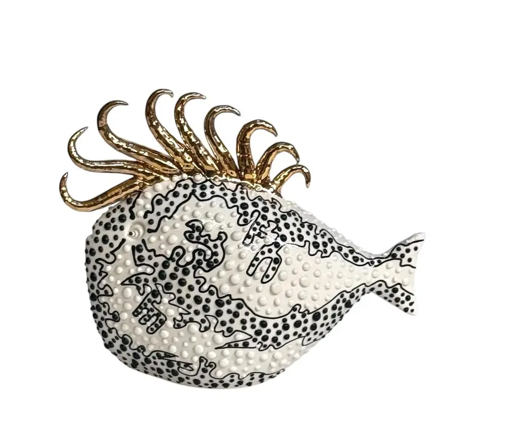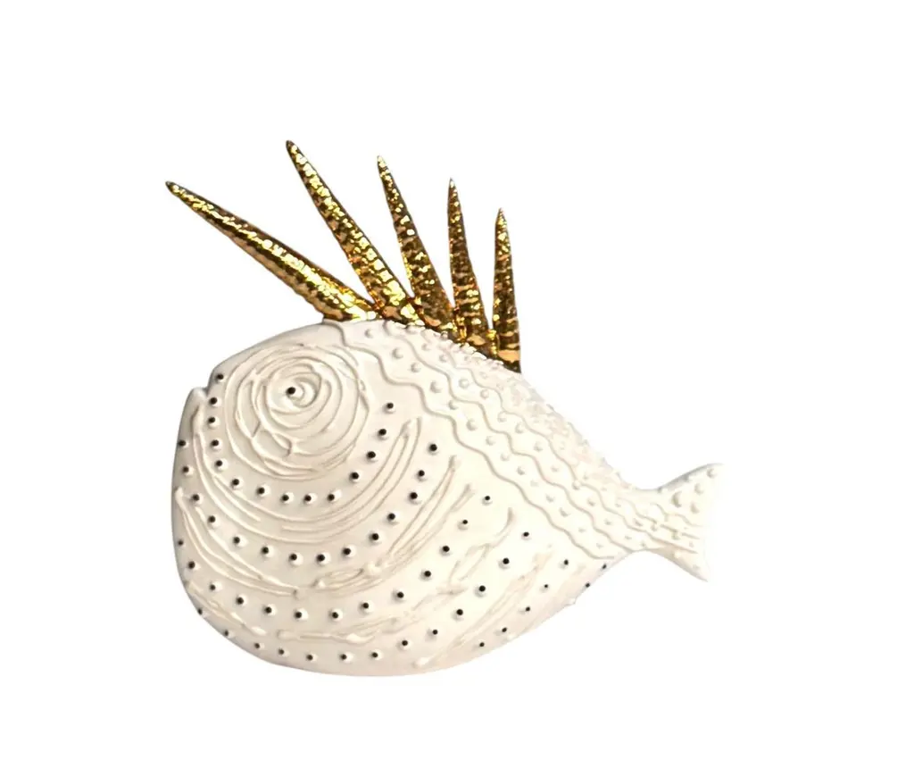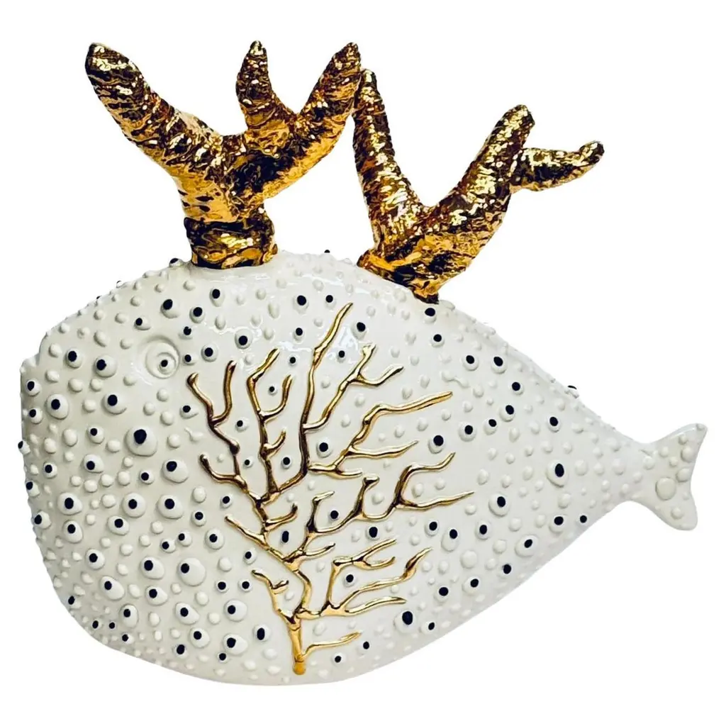 A Set Of 5 Gold Fish Handmade In Italy, Ceramic. Choose Those Or Change Colors!