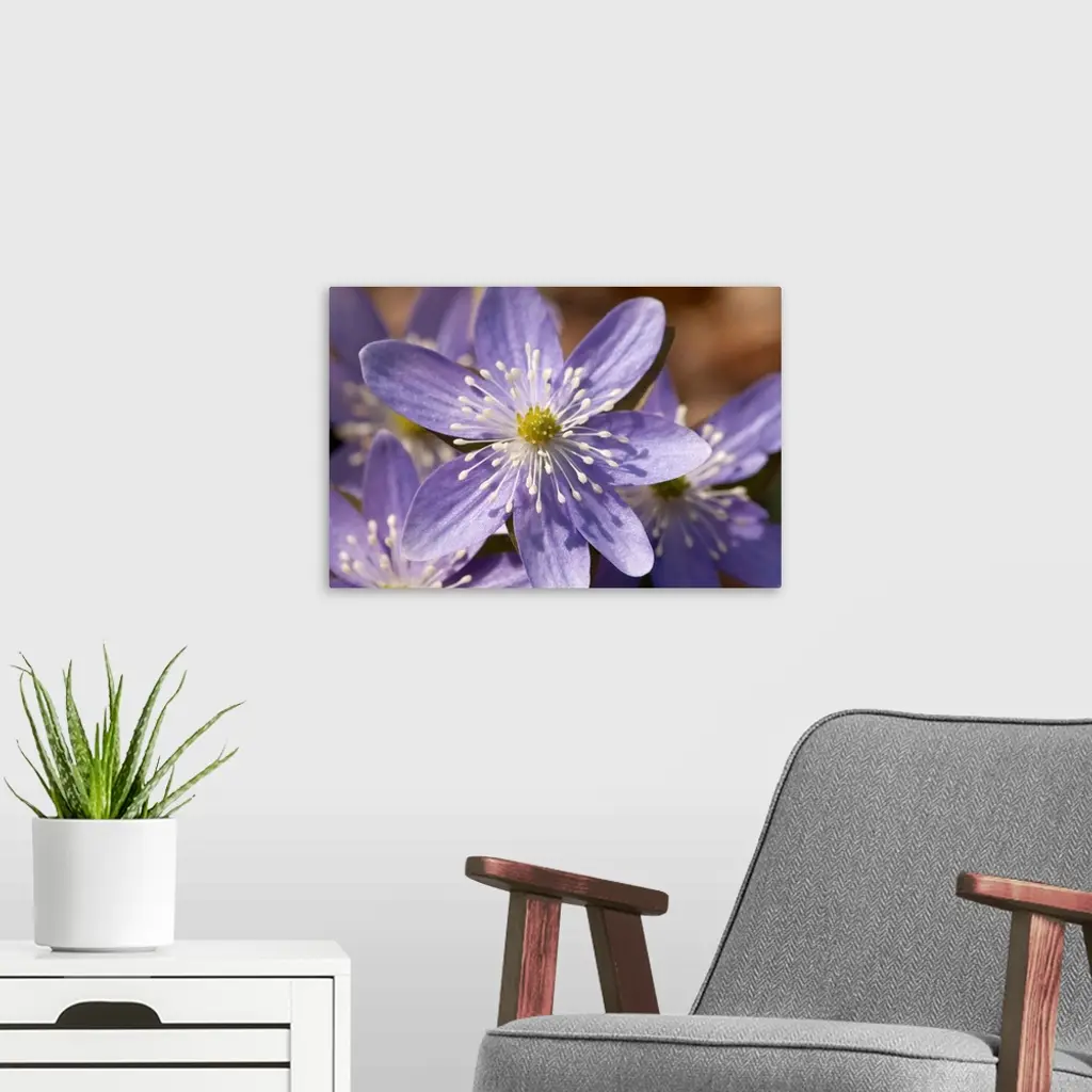 A sharp-lobed hepatica flower, Hepatica acutiloba, in springtime. Framingham, Massachusetts.