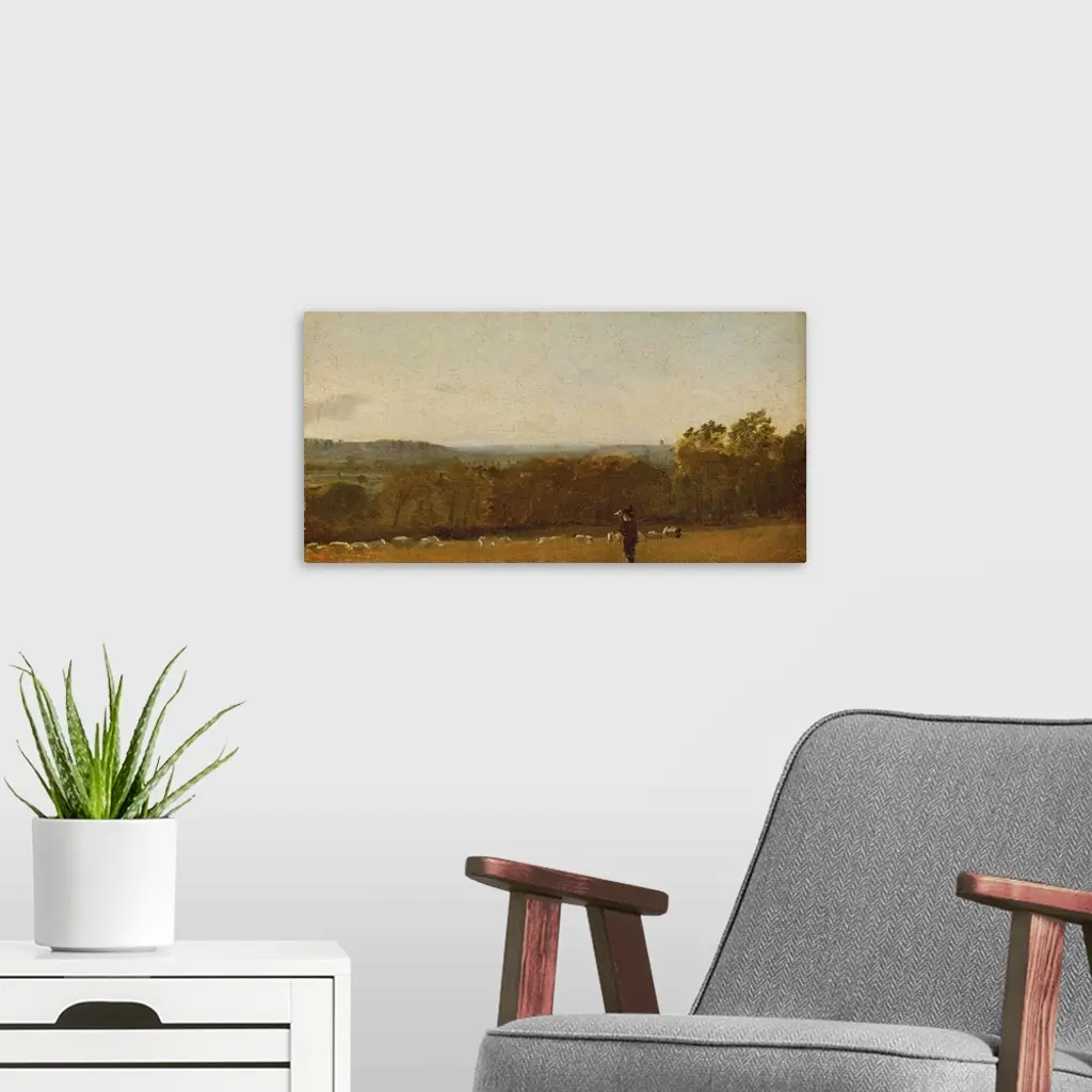 A Shepherd In A Landscape Looking Across Dedham Vale Towards Langham,