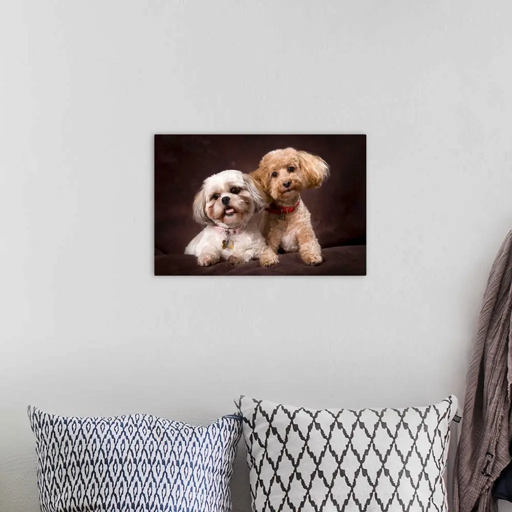A Shihtzu And A Poodle On A Brown Backdrop wall art for home and office decor. Discover canvas art prints, photos, mural, big canvas art and framed wall art in GreatBigCanvas.com's varied collections.
