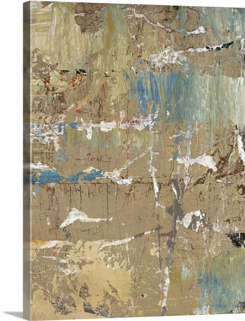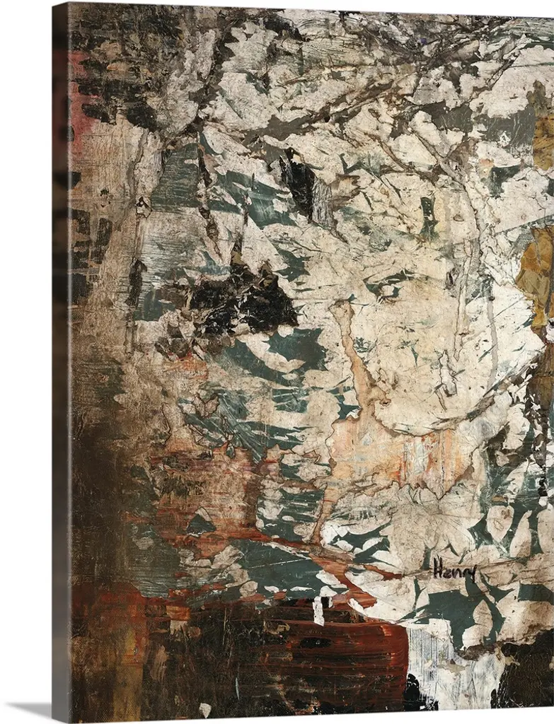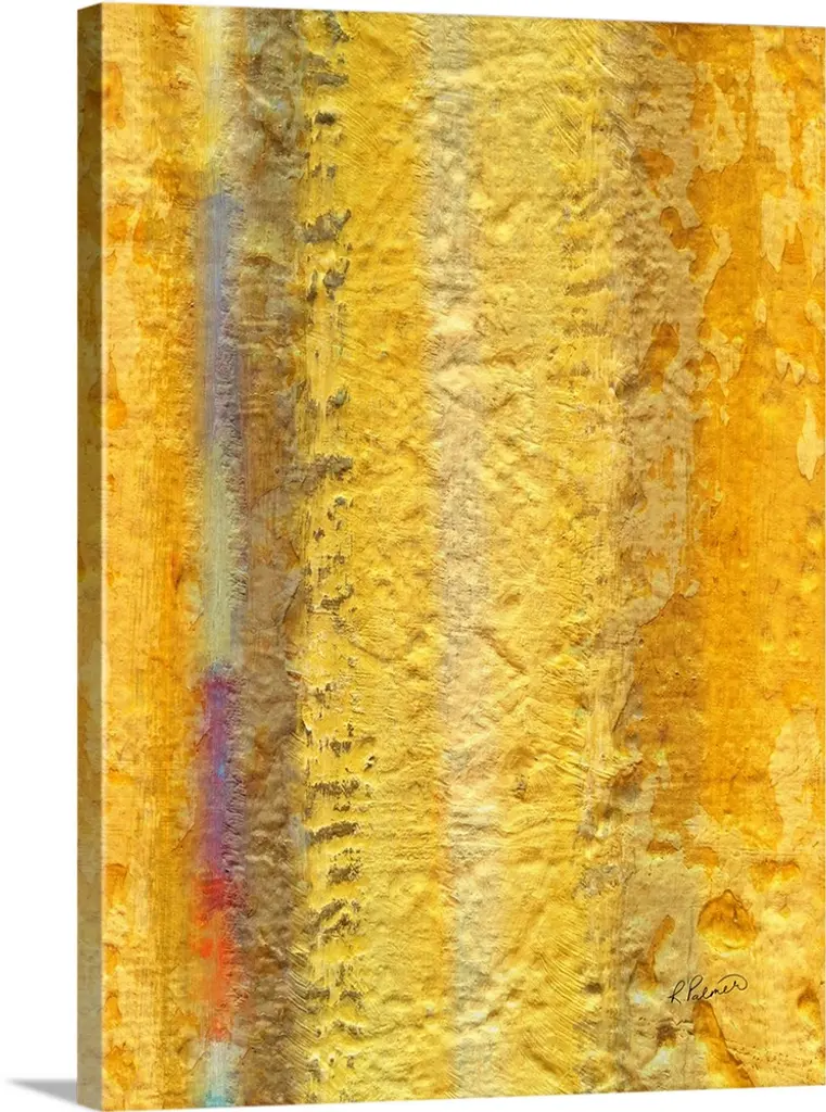 Close up of graffiti on a wall, creating an abstract image in red and gold.