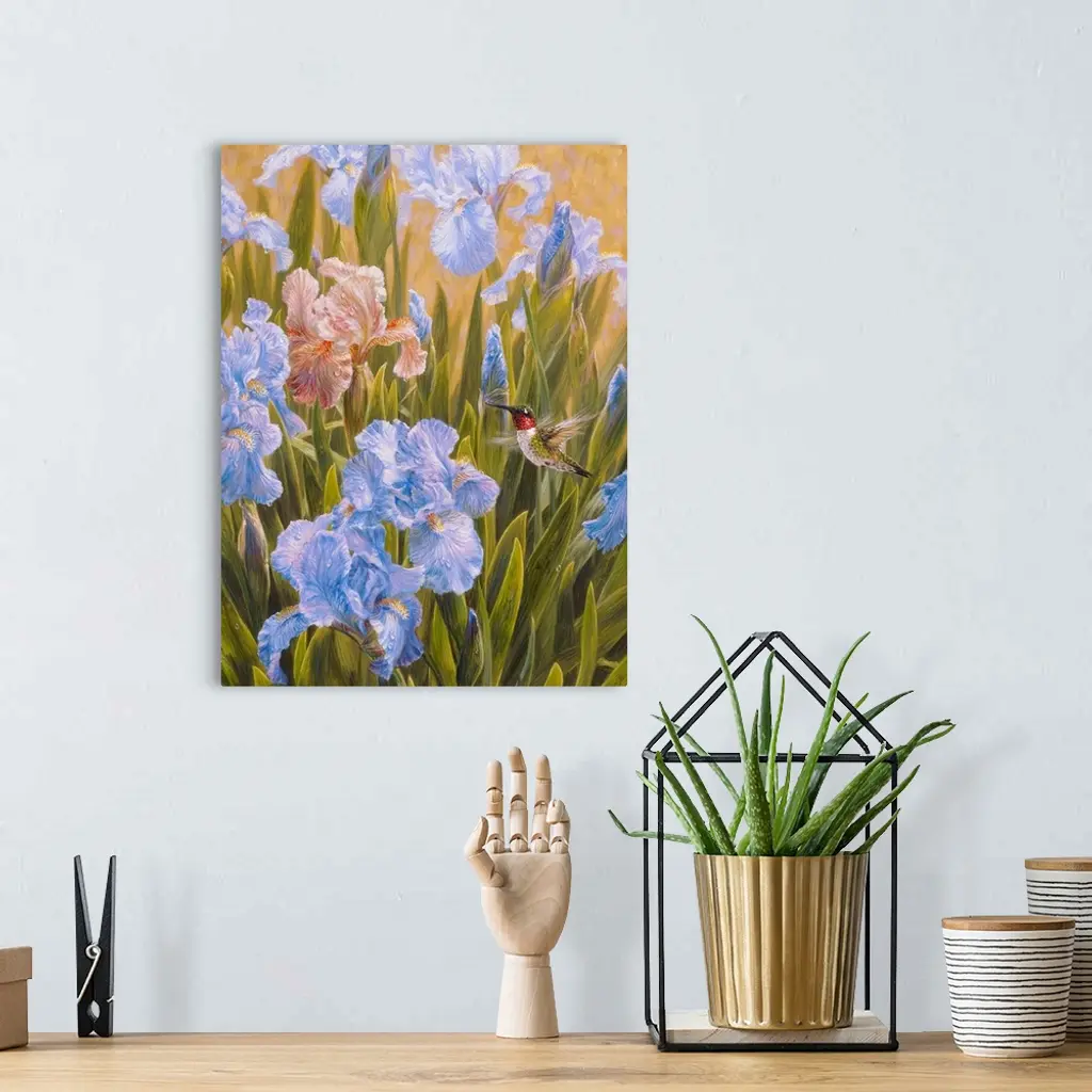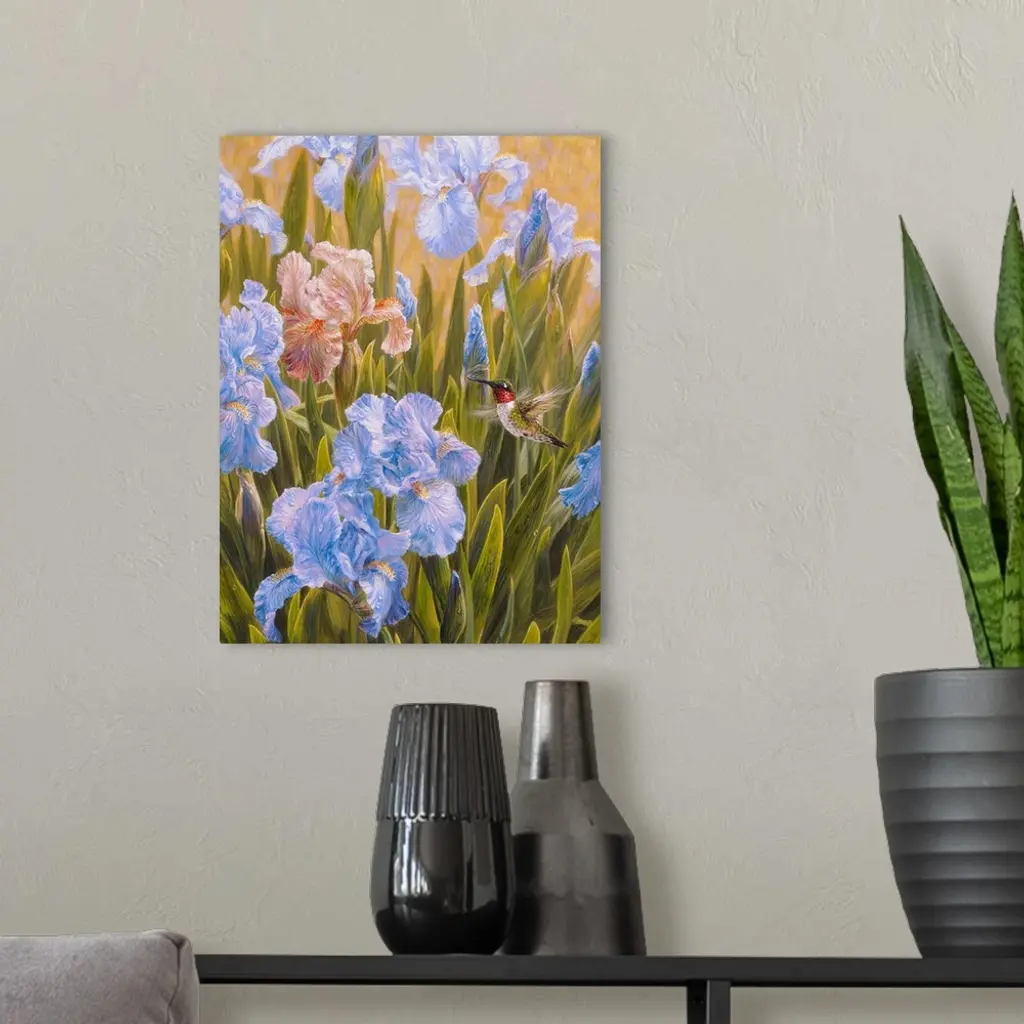 A Summers Dream - Hummingbird And Irises wall art for home and office decor. Discover canvas art prints, photos, mural, big canvas art and framed wall art in GreatBigCanvas.com's varied collections.