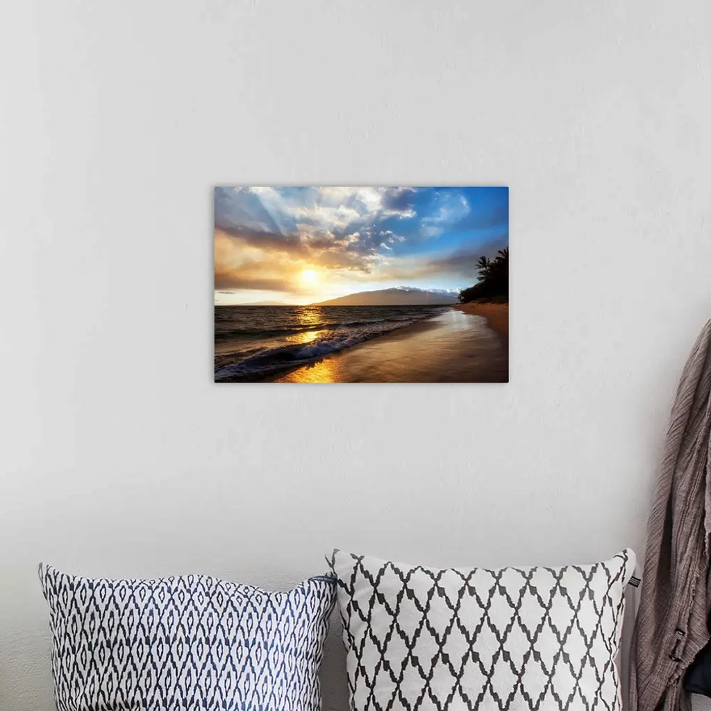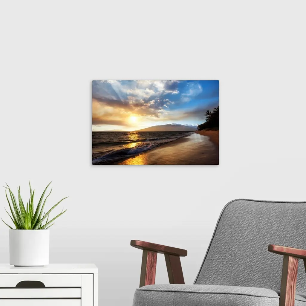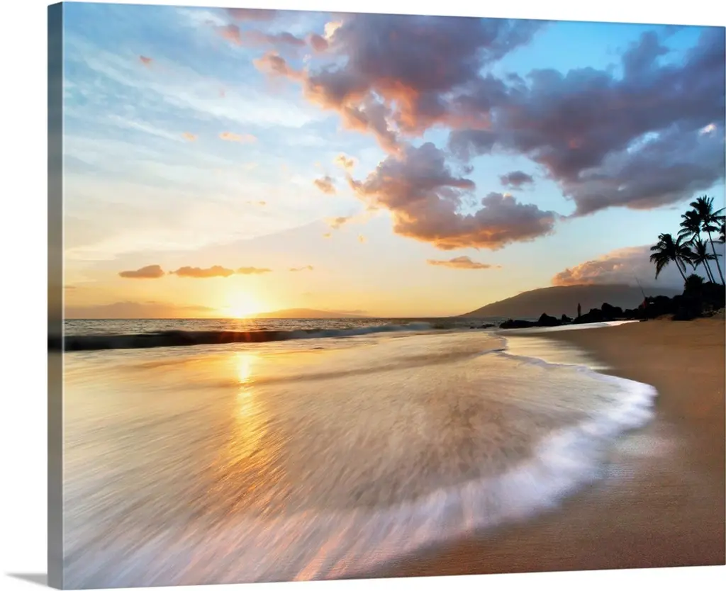 A Sunset View With Soft Water From North Kihei, Maui, Hawaii