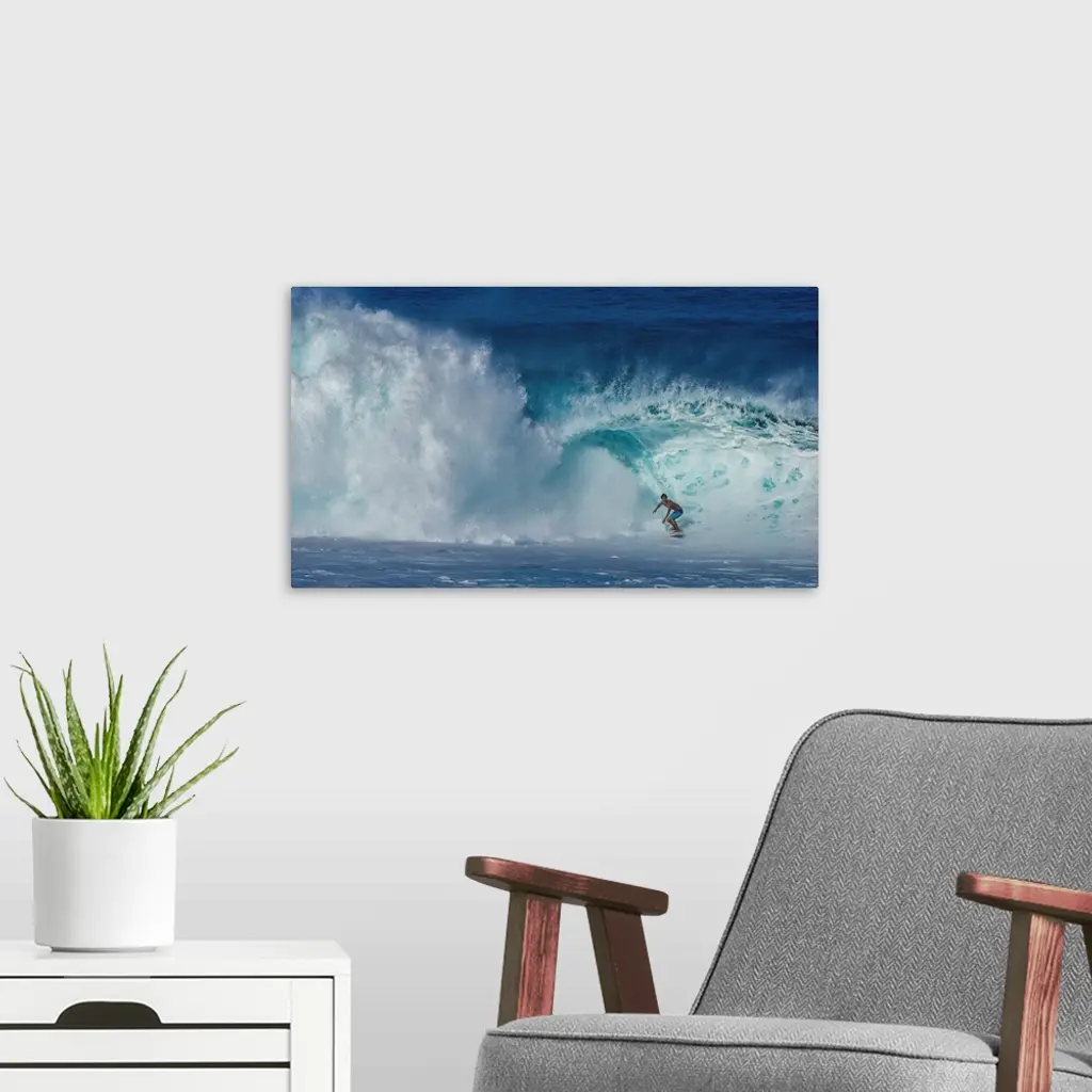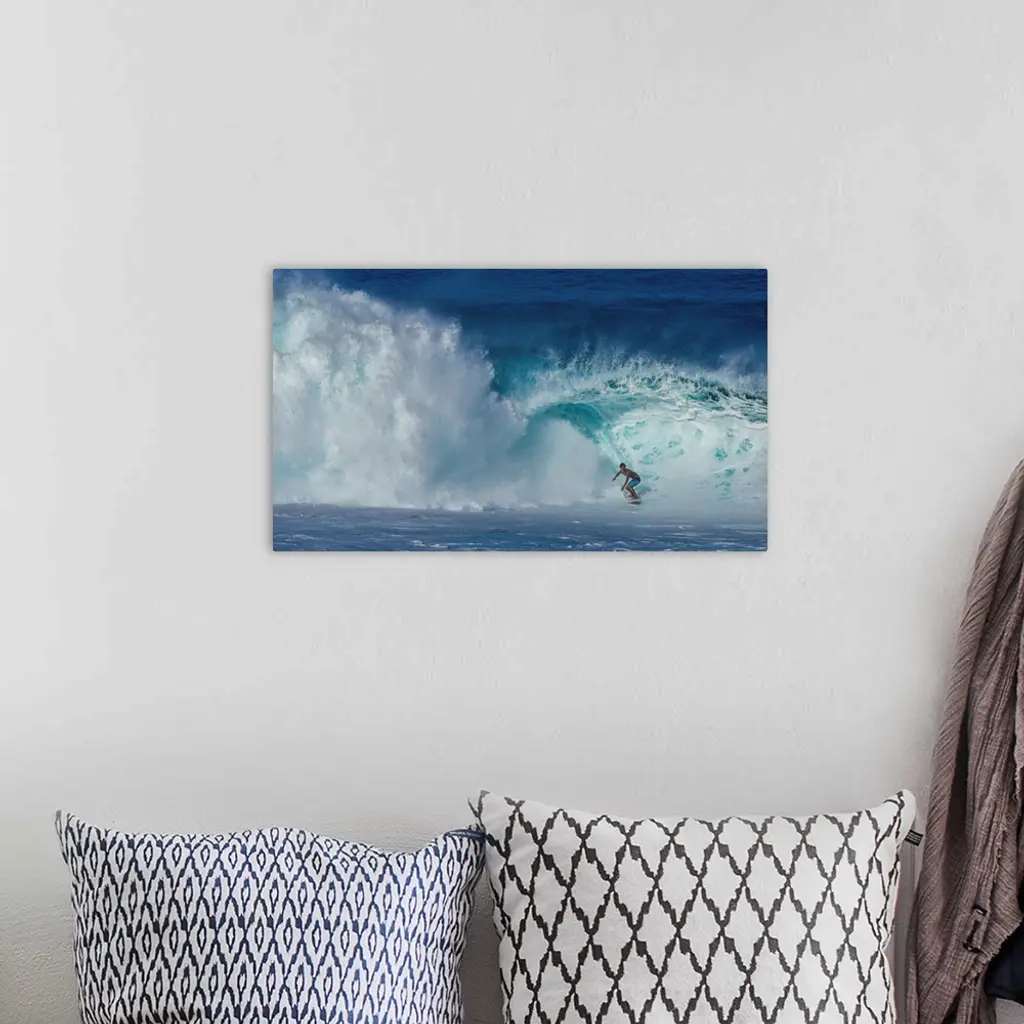A Surfer Catches A Ride On A Pipeline, North Shore, Hawaii wall art for home and office decor. Discover canvas art prints, photos, mural, big canvas art and framed wall art in GreatBigCanvas.com's varied collections.