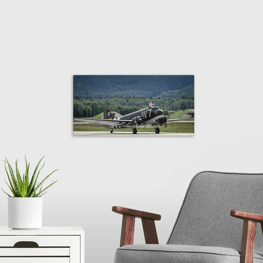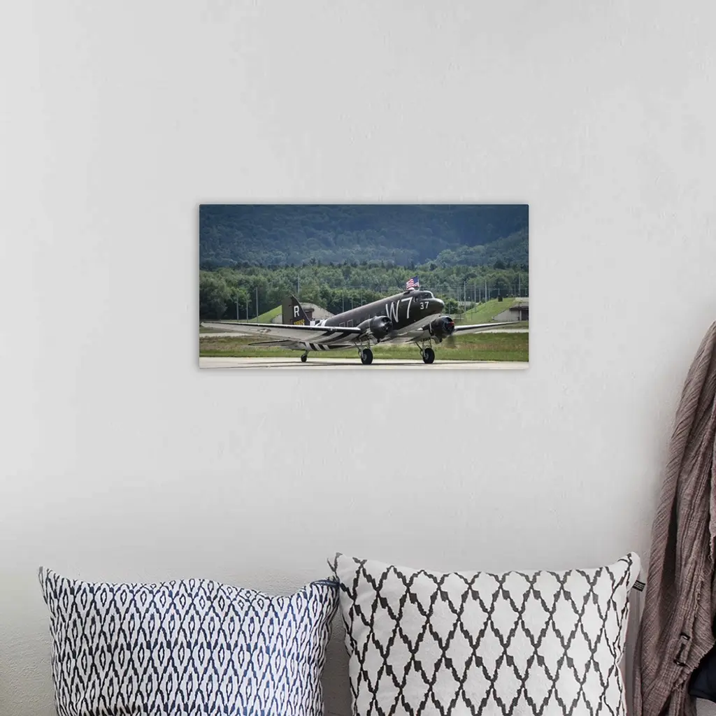 May 26, 2014 - A U.S. Air Force C-47 Skytrain aircraft lands at Ramstein Air Base, Germany, before heading to Normandy, France, to participate in events commemorating the 70th anniversary of D-Day.