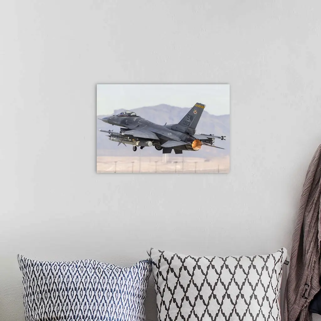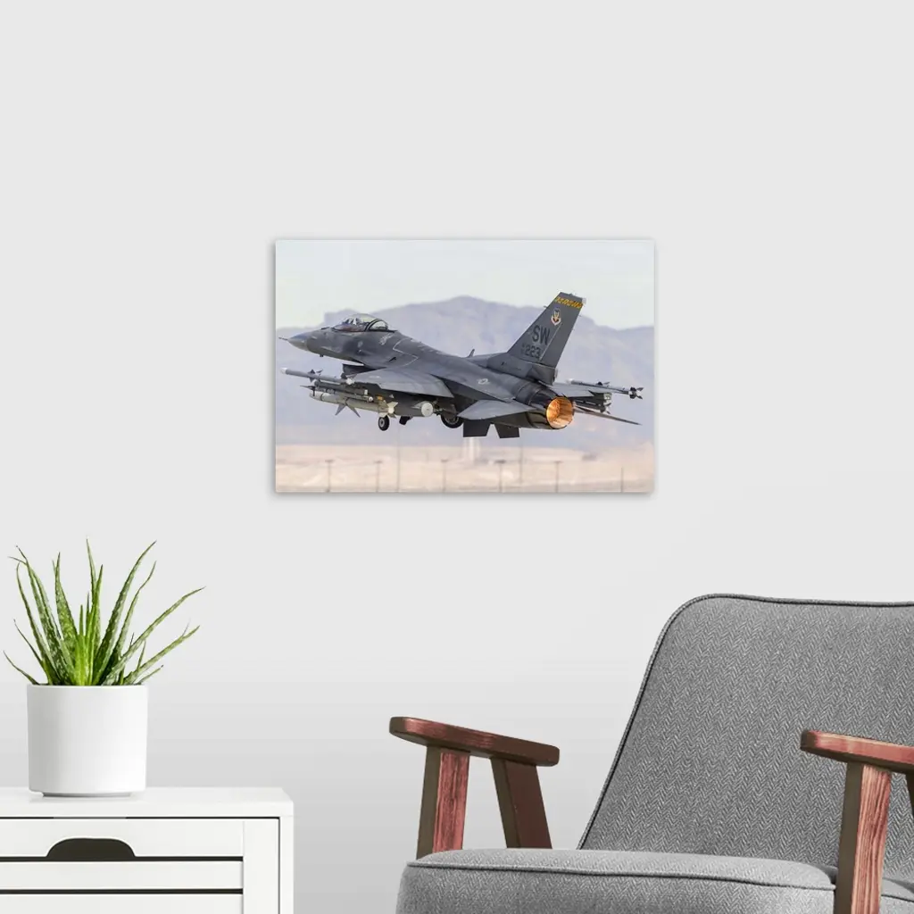 A U.S. Air Force F-16C Fighting Falcon turns after taking off from Nellis Air Force Base, Nevada.
