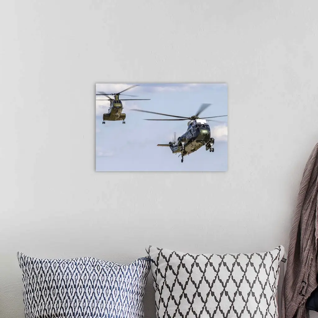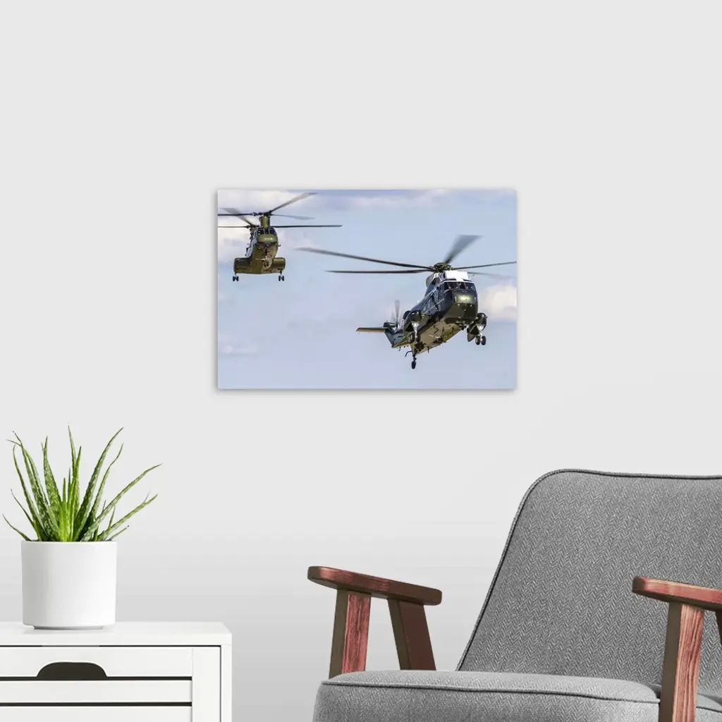 A U.s. Marine Corps Vh-3D Transport Helicopter With A Ch-46e Sea Knight Behind