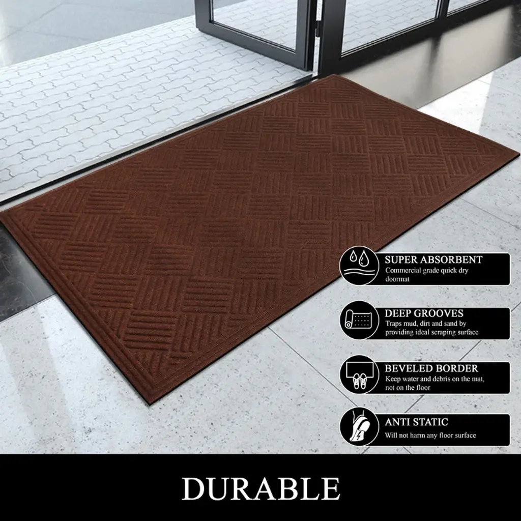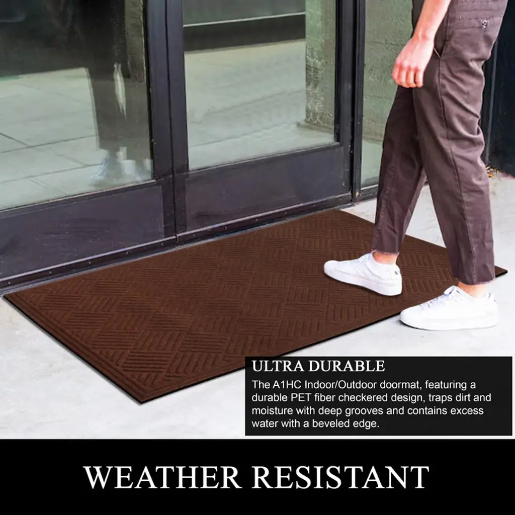 A1hc All Weather Durable Polypropylene Non Slip Backing Rubber Door Mat - 36x60 Inches - Brown