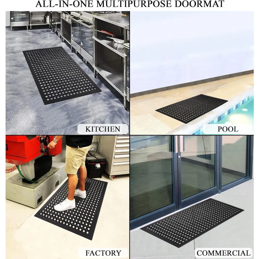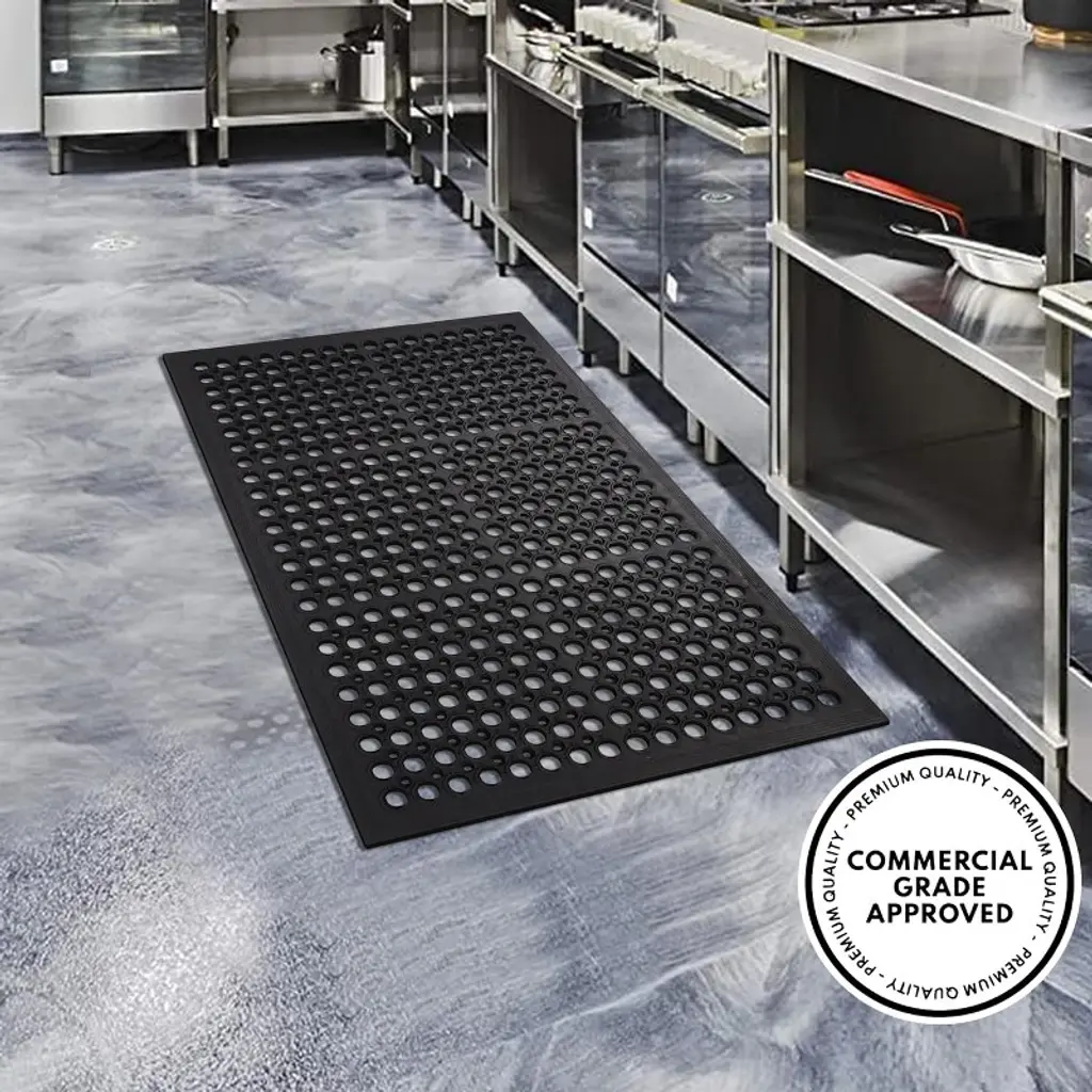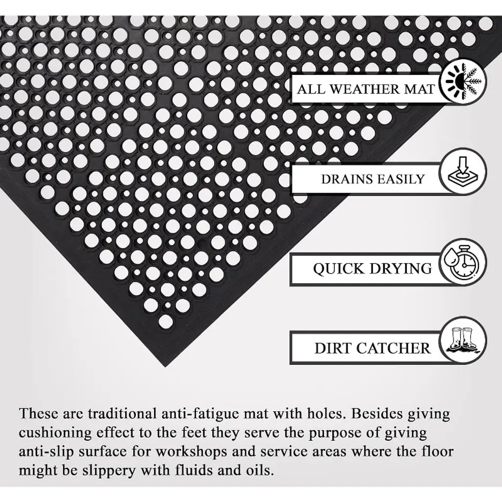 A1hc Anti Fatigue Rubber Floor Non-slip Drain Holes Commercial Mats, 24"x36", Black - Set Of 2