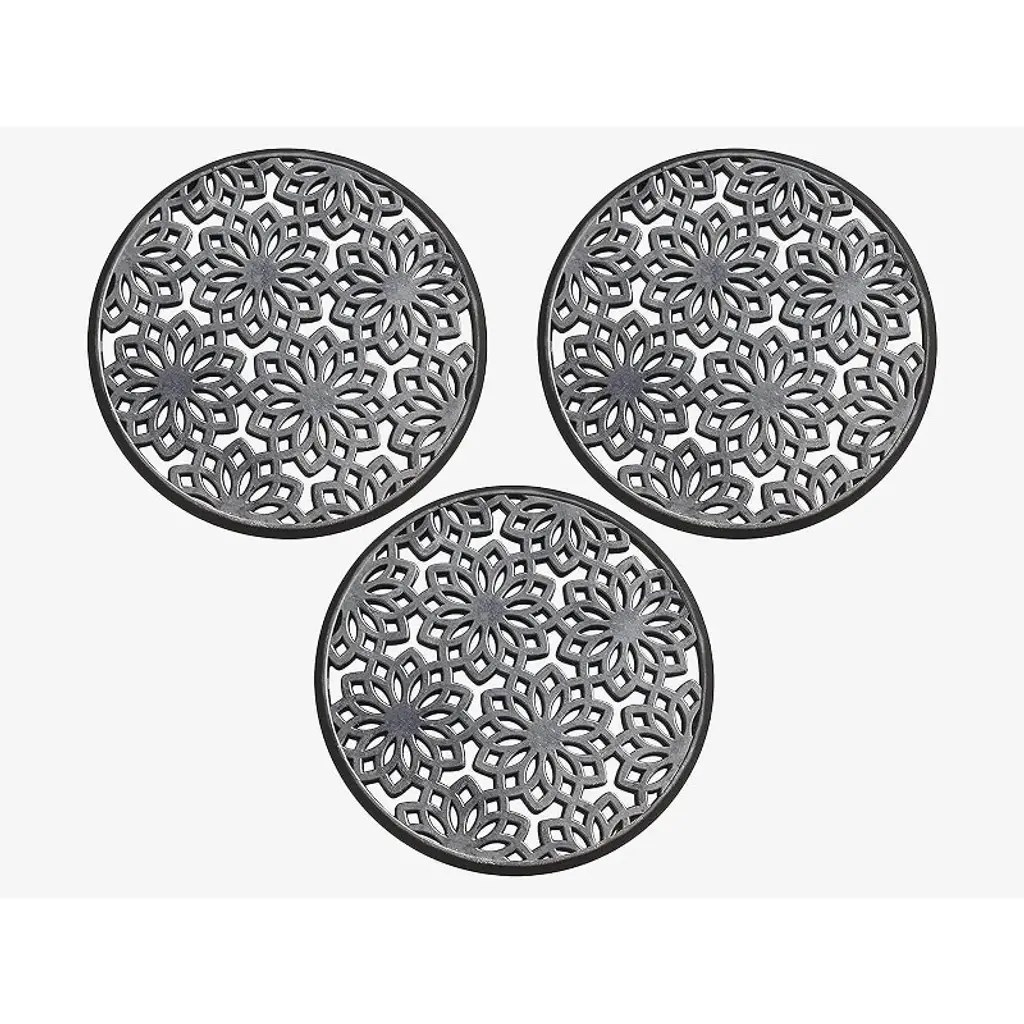 A1hc Multi Functional Garden Stepping Stone Mat, Natural Rubber Hand Finished 12"x12" Set Of 4, Paisley Star Black