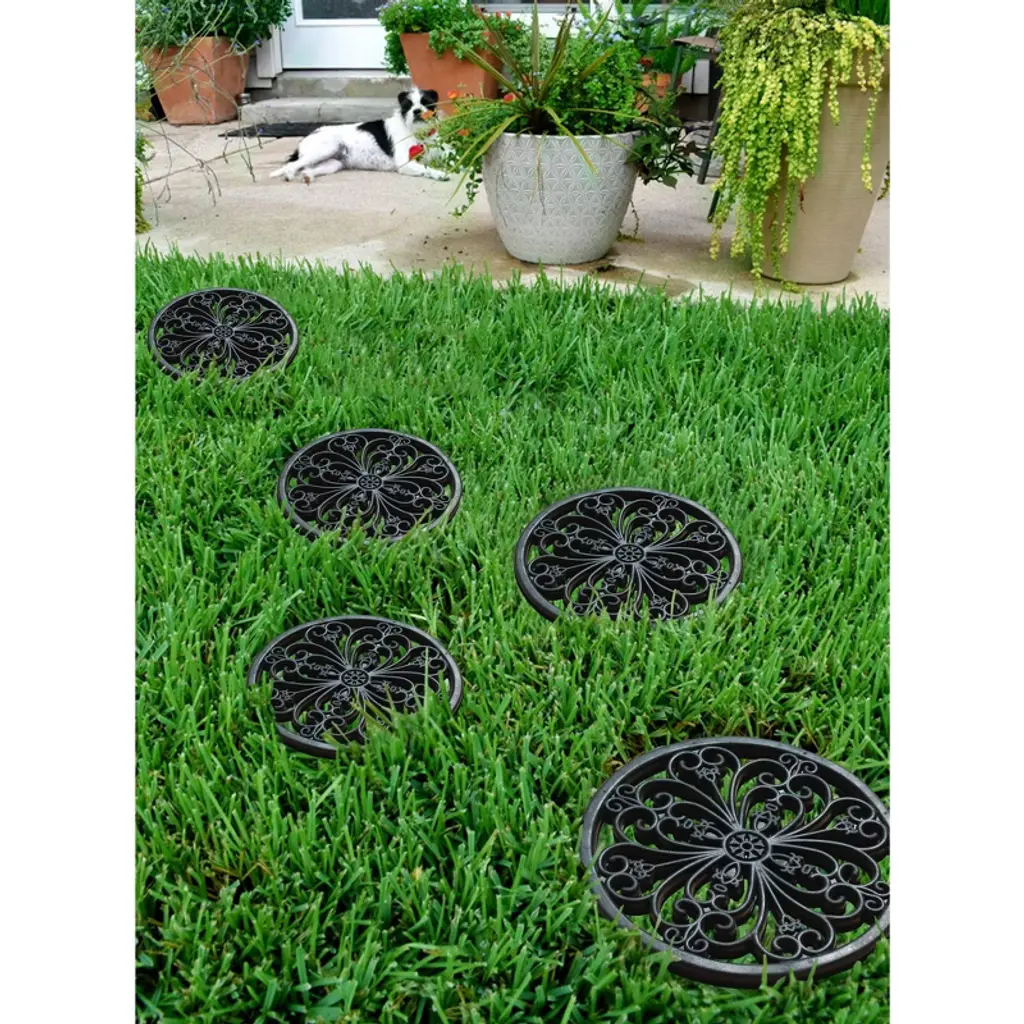 This 100% rubber stepping stone is virtually indestructible, so it's impervious to cold, heat and water.Stepping Stones provides you with a sturdy and durable way to create a pathway through your outdoor landscape.Constructed from high quality rubber that will give you continuous use for years to come. The decorative design adds a beautiful accent to your garden.