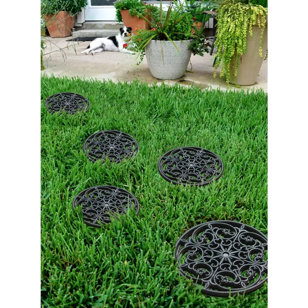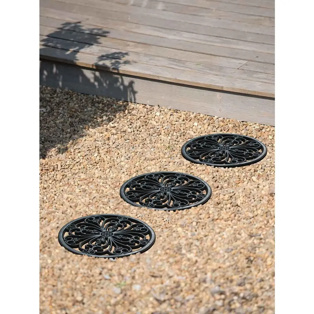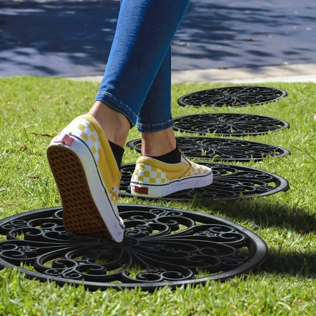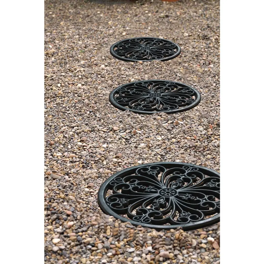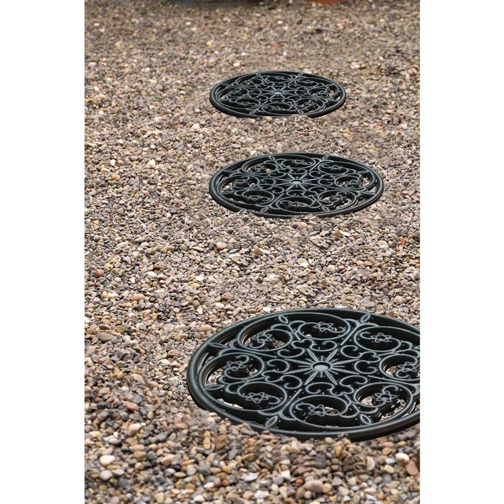 This 100% rubber stepping stone is virtually indestructible, so it's impervious to cold, heat and water.Stepping Stones provides you with a sturdy and durable way to create a pathway through your outdoor landscape.Constructed from high quality rubber that will give you continuous use for years to come. The decorative design adds a beautiful accent to your garden.
