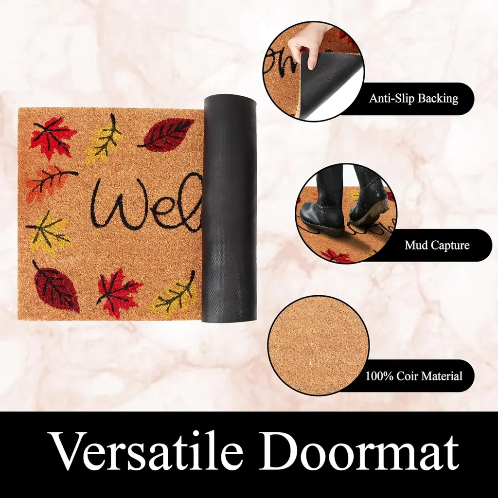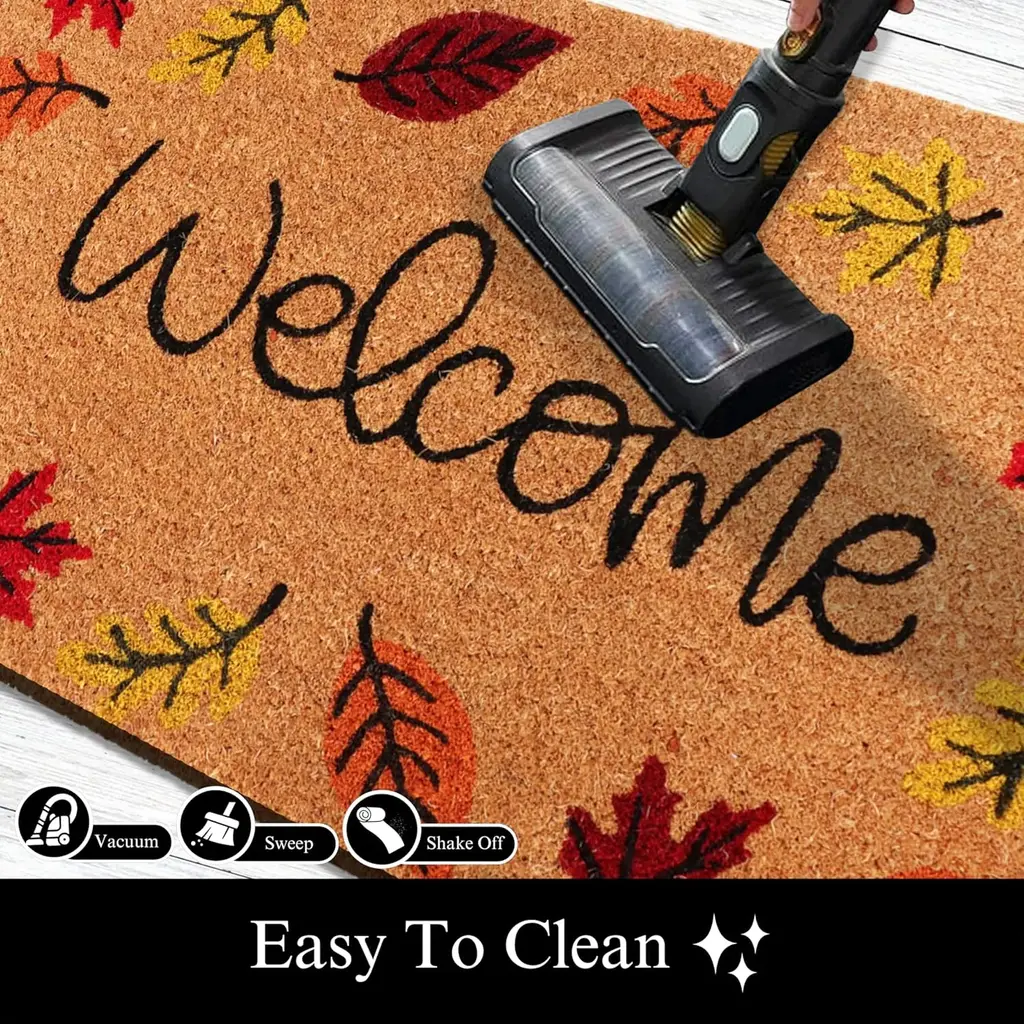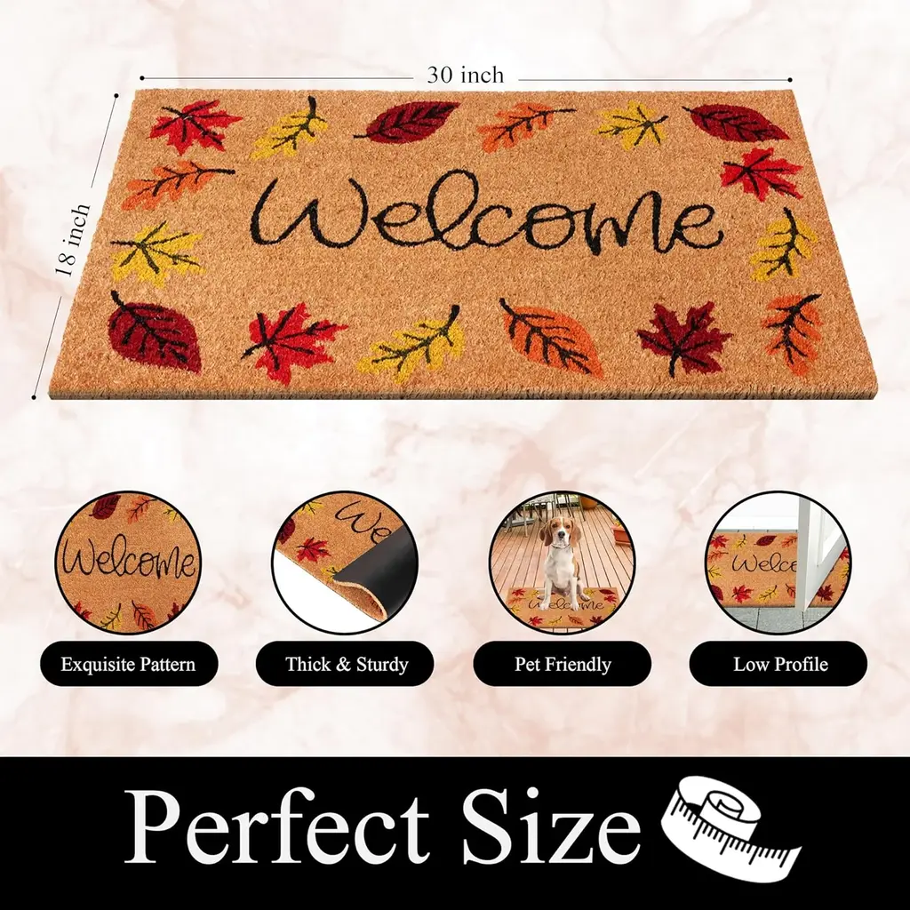 A1hc Natural Coco Coir Door Mat With Heavy Duty Non-Slip Pvc Backing - 18" X 30" - Easy To Clean - Autumn Leaves Welcome