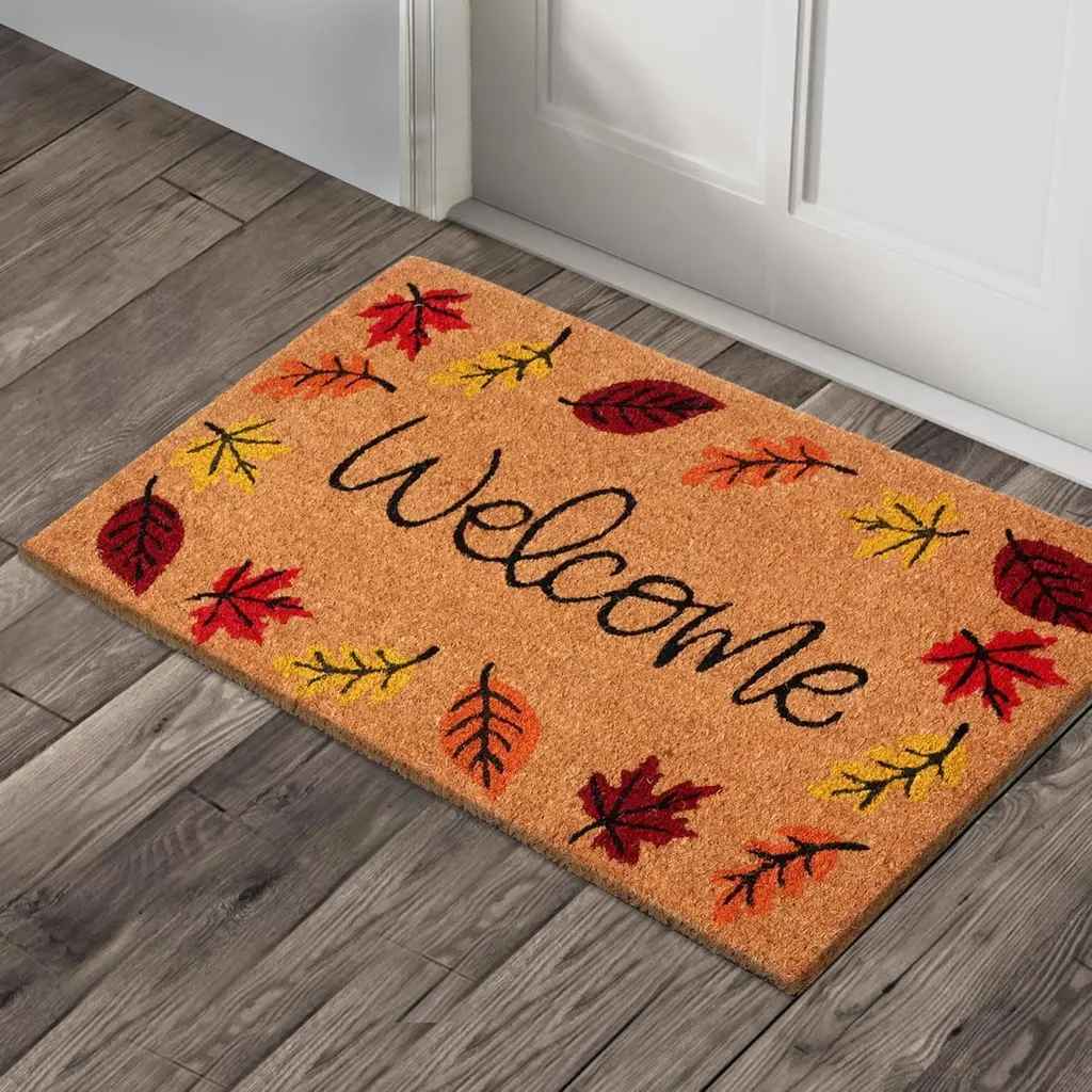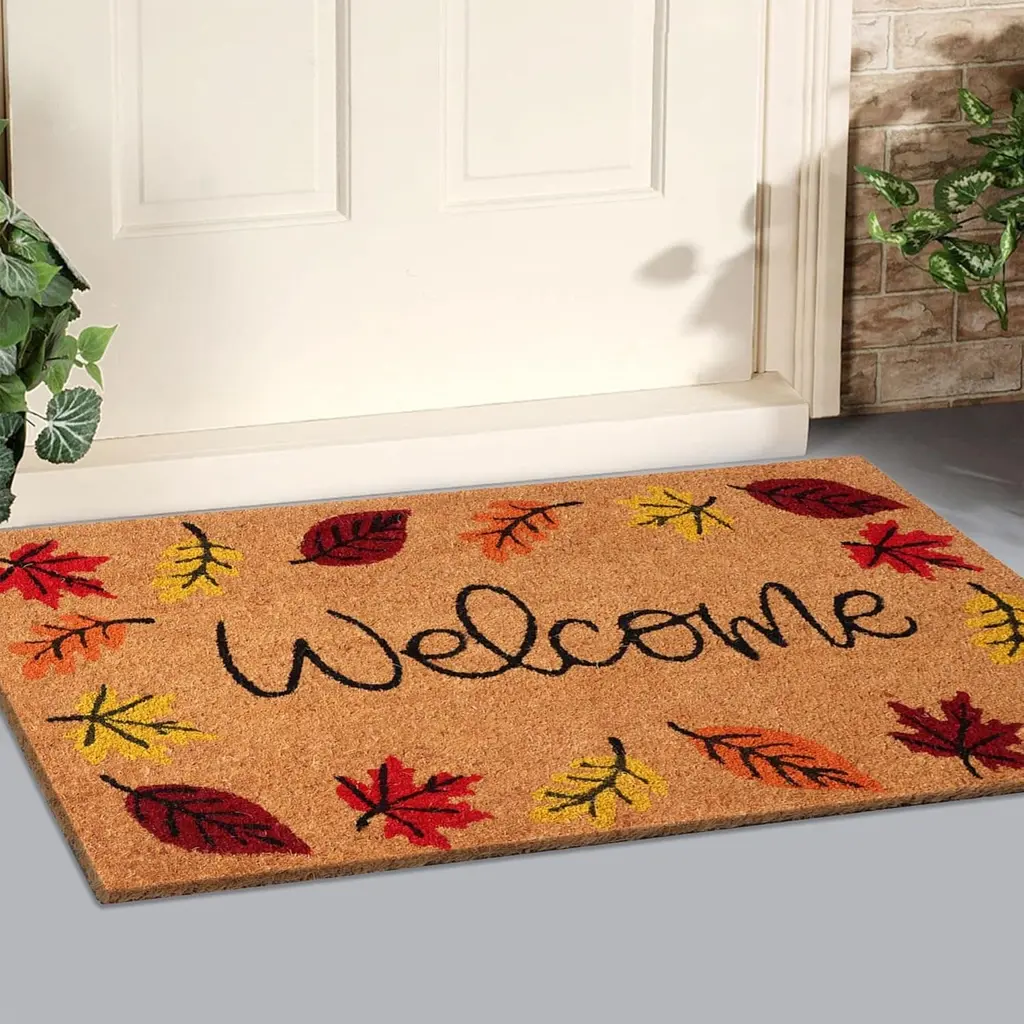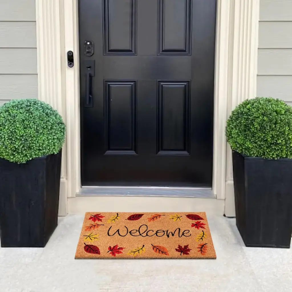 A1hc Natural Coco Coir Door Mat With Heavy Duty Non-Slip Pvc Backing - 18" X 30" - Easy To Clean - Autumn Leaves Welcome