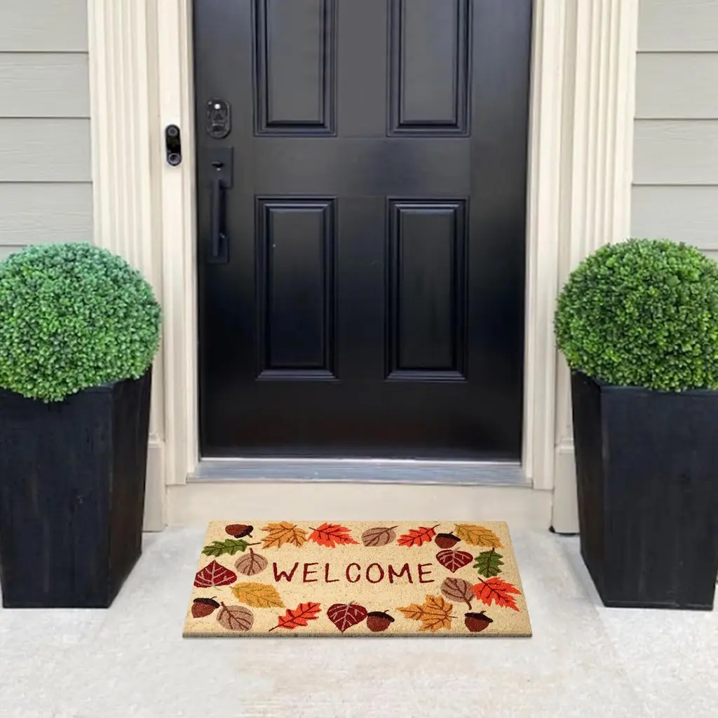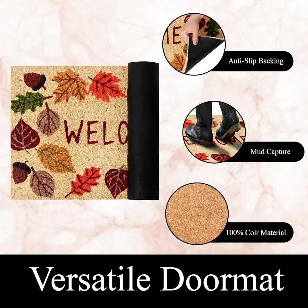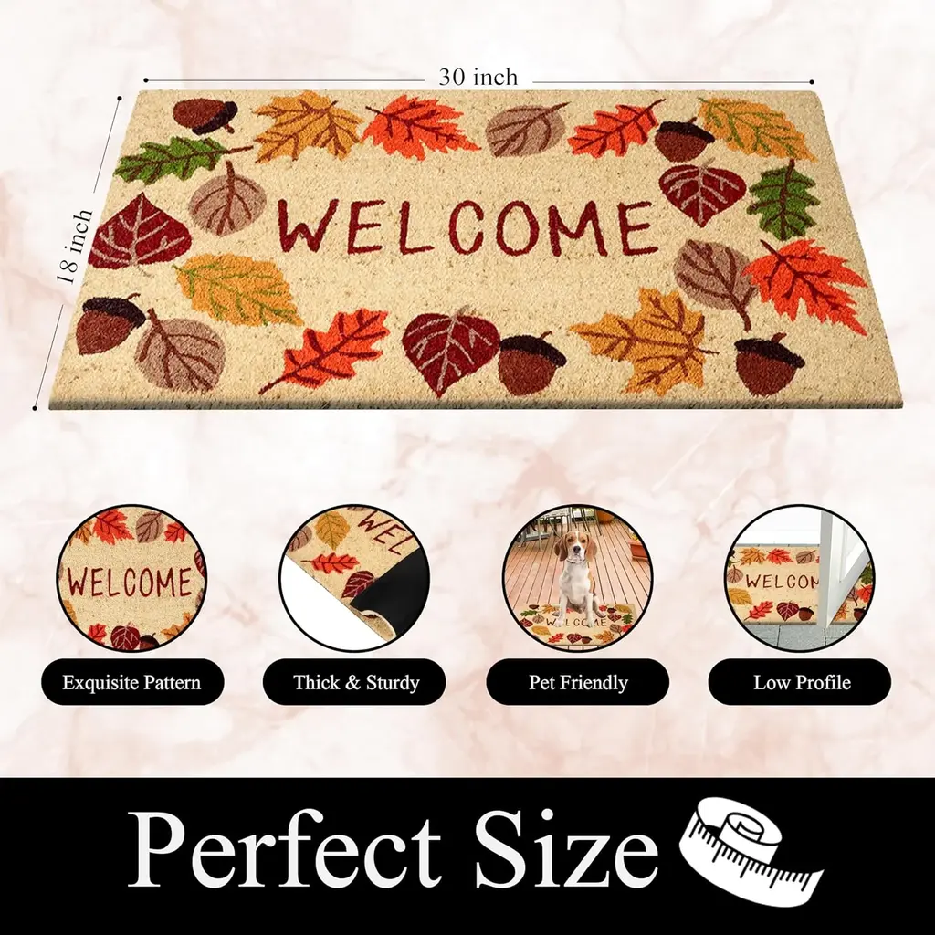 A1hc Natural Coco Coir Door Mat With Heavy Duty Non-Slip Pvc Backing - 18" X 30" - Easy To Clean - Bleached Leaves Welcome