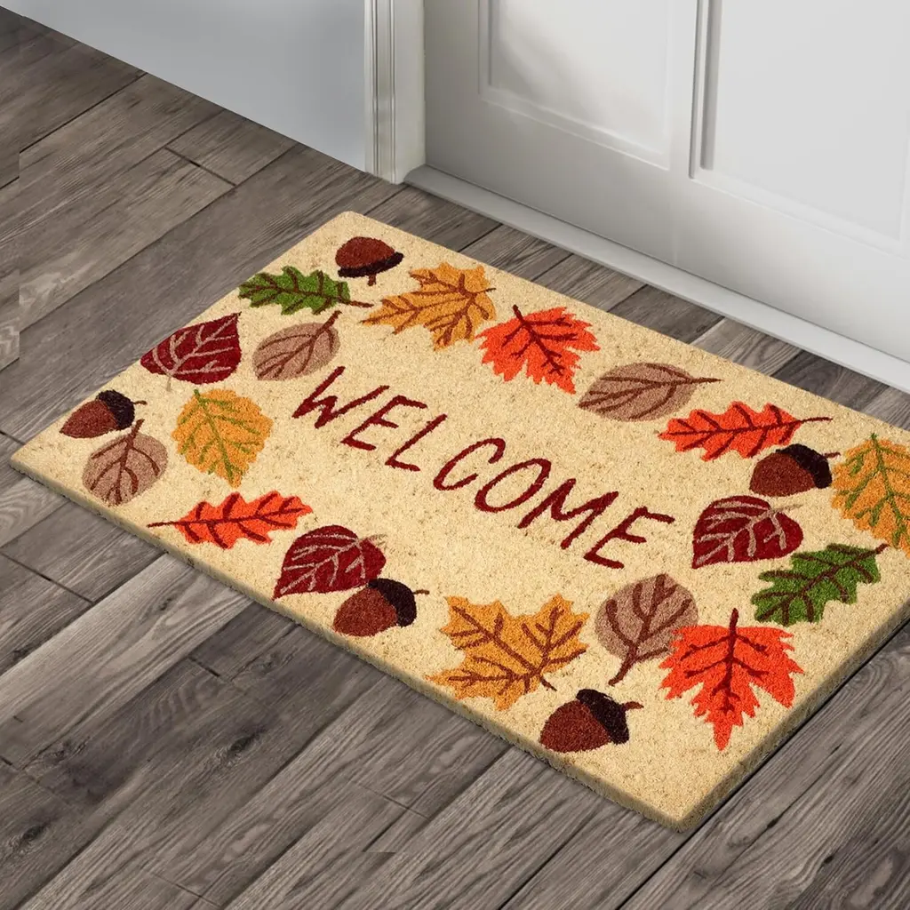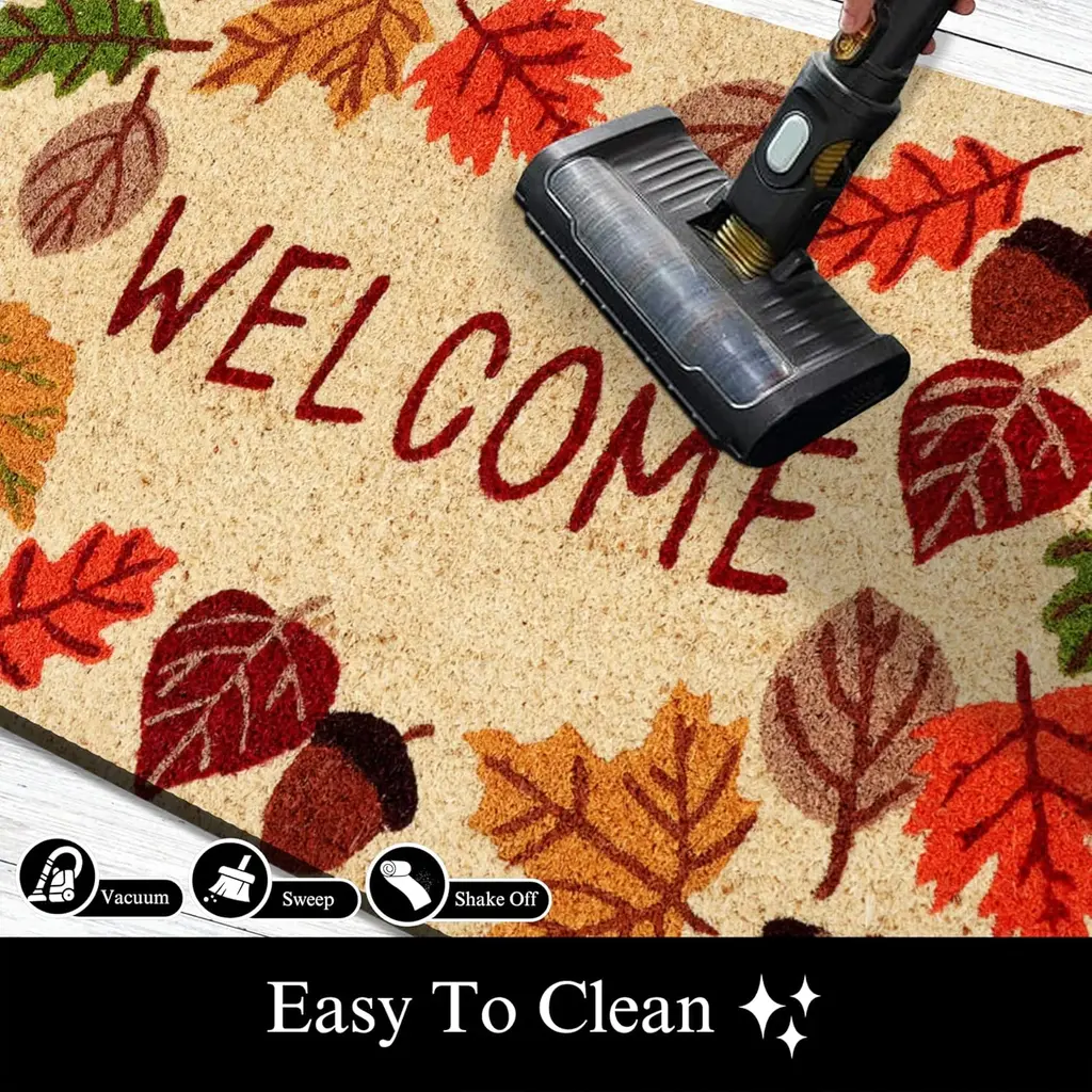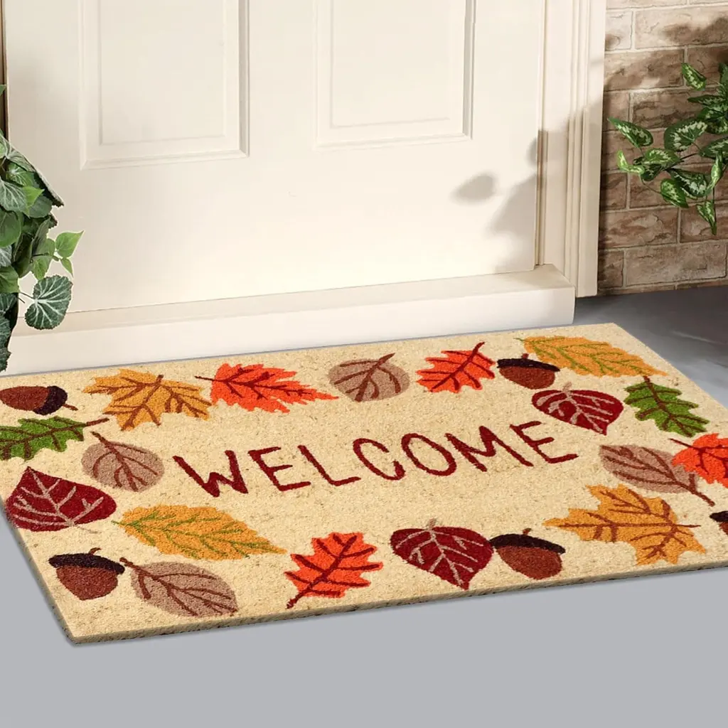 A1hc Natural Coco Coir Door Mat With Heavy Duty Non-Slip Pvc Backing - 18" X 30" - Easy To Clean - Bleached Leaves Welcome