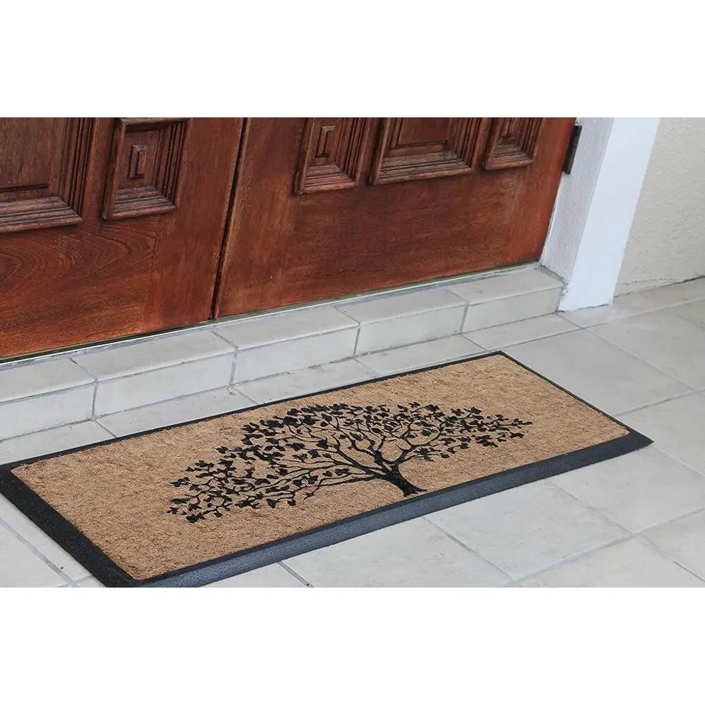 A1hc Natural Coir & Rubber Hand Flocked Large Door Mat - 18"x48" - Beige/black