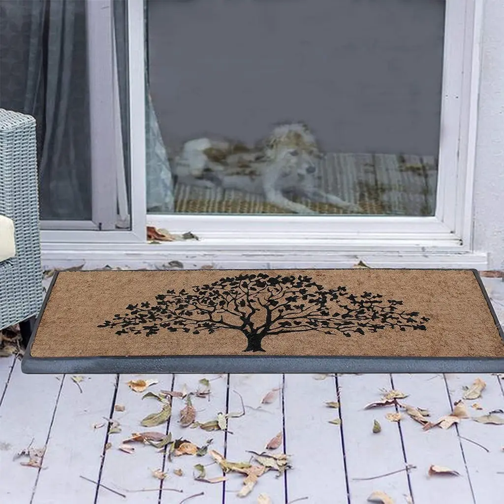 More than a decorative enhancement this rubber & coir doormat is made with a heavy rubber backing that anchors it in place while you brush dirt & debris from shoes & boots. The tufted coco-fiber facilitates scrubbing soles clean. Keeps your floor clean when you decorate your entryway with this beautiful doormat, which includes a sturdy rubber backing to help in keep the mat in place & prevent slips. The attractive design of this Coir door mats outside creates a welcoming entrance for your guests & the durable coir material holds up to lots of foot traffic. This Welcome Mat Recommended for outdoor use in covered areas. Vacuum or shake the mat regularly for longer life.