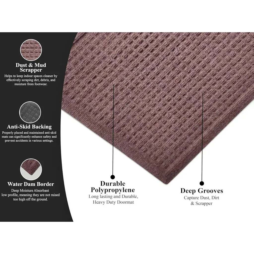 The A1HC Polypropylene rubber door mat is a welcome mat for your front door that is a formidable dirt trapper, capturing dirt, mud, and other debris. No more worrying about unwanted messes inside your place. This Doormat is designed to keep your floors clean and pristine. Its super absorbent properties make it an excellent front door mat as it quickly soaks up excess moisture, ensuring your floors stay dry and safe. Elevate your entrance with the A1HC Indoor/ Outdoor door mat, the perfect welcome mat for your front door.ALL WEATHER PERFORMANCE WITH SUPERIOR DIRT AND MOISTURE ABSORBING DOOR MAT : These highly absorbing PP door mats are engineered to absorb water, mud, and moisture. The deep grooved poly surface removes dust, pollens and captures allergens keeping your entryways clean and dry, whether it is raining, snowing, or muddy outside, these door mats can handle any weather condition, supplying a reliable barrier against dirt and moisture. VERSATILE INDOOR-OUTDOOR USE : These door mats are suitable for both indoor-outdoor use at the main entrance , patios, kitchens, mudrooms, garages, bar counters, and any high-traffic area where you want to keep dirt and moisture at bay. The mats are otherwise soft and pet friendly, who also love them. DURABLE AND SLIP-RESISTANT WITH BEVELED EDGES : These door mats are eco-friendly and designed to withstand heavy foot traffic while keeping their functionality. The non-slip heavy tire crumb rubber backing ensures the mats stay firmly in place, supplying a safe and secure surface for your guests and family. EASY TO CLEAN AND MAINTAIN : Cleaning the mats is a breeze - simply shake off debris or hose them down to keep their pristine appearance. They come in stylish Design Options, Choose from a variety of colors and patterns to complement your home's décor while still enjoying the benefits of superior performance. LONG - LASTING INVESTMENT: With their robust construction, these PP door mats are built to last, providing long-term value, and saving you money on replacement costs. This can be an ideal Gift to your friends and family . USA: BASED COMPANY AND CUSTOMER SATISFACTION GUARANTEE: We are a US-based company with our own distribution center. We stand behind the quality of our products, and your satisfaction is our priority. We take pride in designing and sourcing the best items and offer a customer satisfaction guarantee for peace of mind.