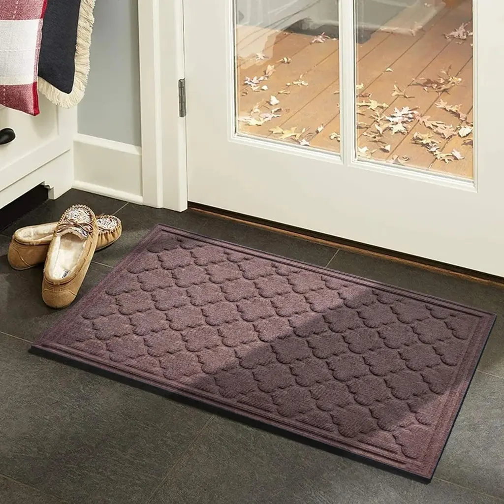The A1HC Polypropylene rubber door mat is a welcome mat for your front door that is a formidable dirt trapper, capturing dirt, mud, and other debris. No more worrying about unwanted messes inside your place. This Doormat is designed to keep your floors clean and pristine. Its super absorbent properties make it an excellent front door mat as it quickly soaks up excess moisture, ensuring your floors stay dry and safe. Elevate your entrance with the A1HC Indoor/ Outdoor door mat, the perfect welcome mat for your front door.ALL WEATHER PERFORMANCE WITH SUPERIOR DIRT AND MOISTURE ABSORBING DOOR MAT : These highly absorbing PP door mats are engineered to absorb water, mud, and moisture. The deep grooved poly surface removes dust, pollens and captures allergens keeping your entryways clean and dry, whether it is raining, snowing, or muddy outside, these door mats can handle any weather condition, supplying a reliable barrier against dirt and moisture. VERSATILE INDOOR-OUTDOOR USE : These door mats are suitable for both indoor-outdoor use at the main entrance , patios, kitchens, mudrooms, garages, bar counters, and any high-traffic area where you want to keep dirt and moisture at bay. The mats are otherwise soft and pet friendly, who also love them. DURABLE AND SLIP-RESISTANT WITH BEVELED EDGES : These door mats are eco-friendly and designed to withstand heavy foot traffic while keeping their functionality. The non-slip heavy tire crumb rubber backing ensures the mats stay firmly in place, supplying a safe and secure surface for your guests and family. EASY TO CLEAN AND MAINTAIN : Cleaning the mats is a breeze - simply shake off debris or hose them down to keep their pristine appearance. They come in stylish Design Options, Choose from a variety of colors and patterns to complement your home's décor while still enjoying the benefits of superior performance. LONG - LASTING INVESTMENT: With their robust construction, these PP door mats are built to last, providing long-term value, and saving you money on replacement costs. This can be an ideal Gift to your friends and family . USA: BASED COMPANY AND CUSTOMER SATISFACTION GUARANTEE: We are a US-based company with our own distribution center. We stand behind the quality of our products, and your satisfaction is our priority. We take pride in designing and sourcing the best items and offer a customer satisfaction guarantee for peace of mind.