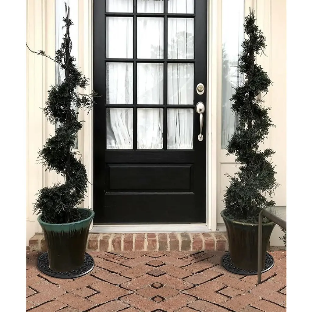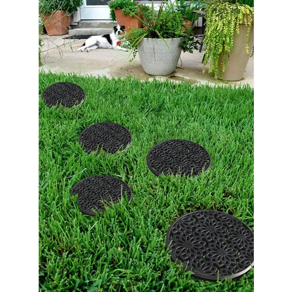 A1hc Rubber Multi Functional Garden Stepping Stone Paisley Round Black Mat , 14"x14" Set Of 3