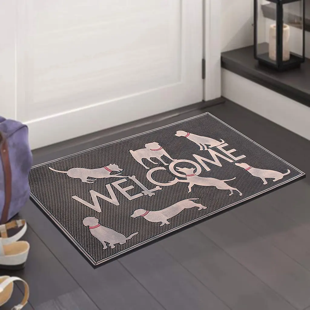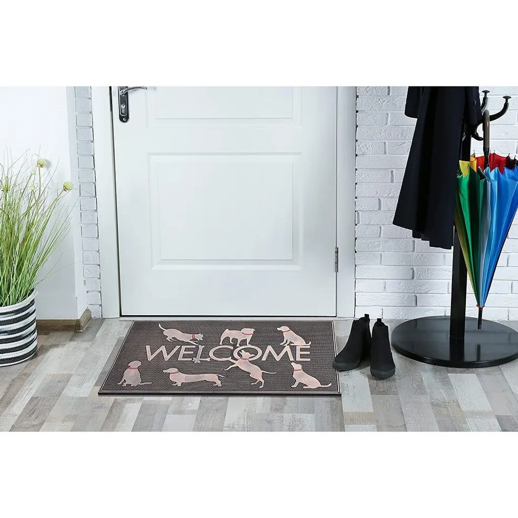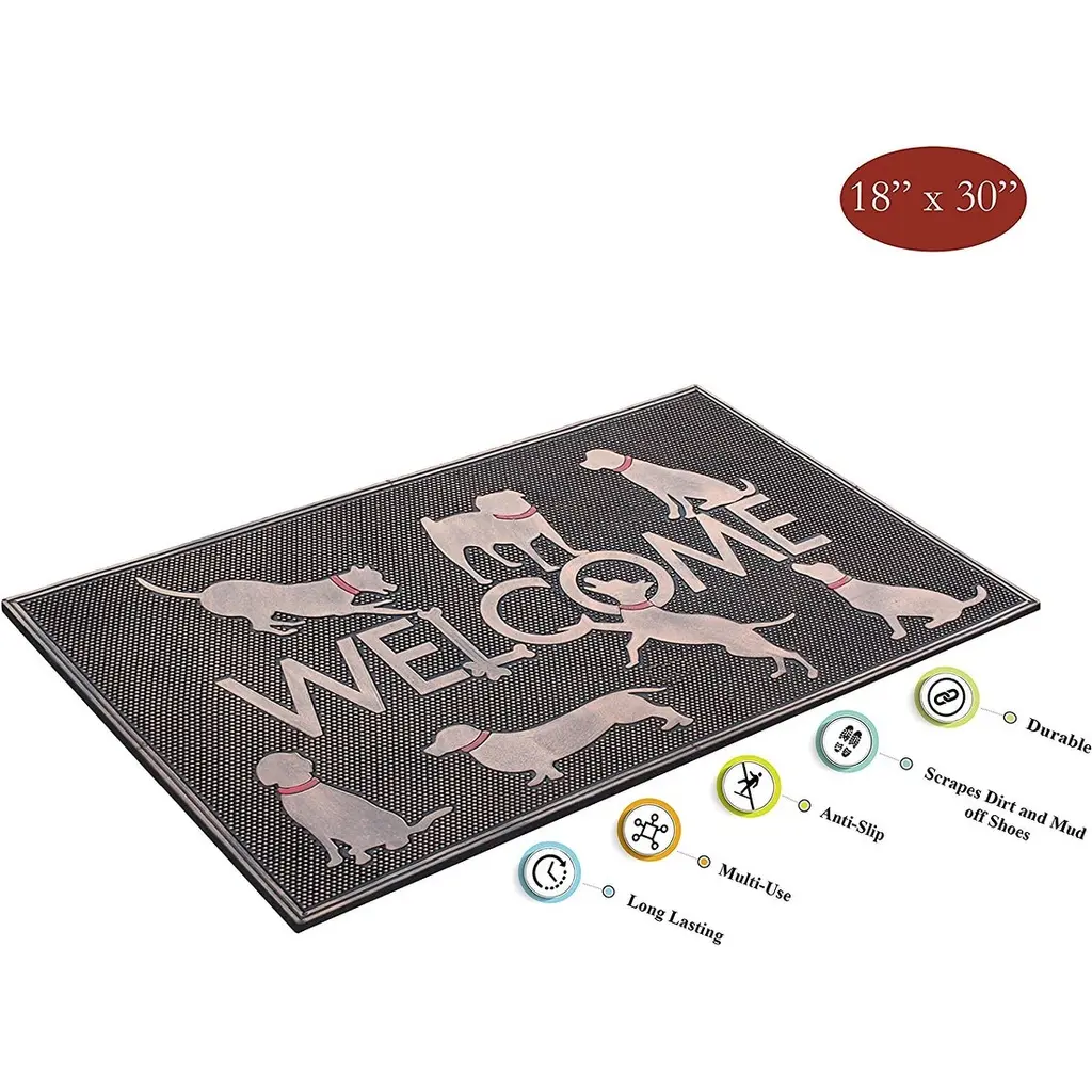 A1hc Rubber Pin 18” X 30” For Outdoor Entrance, Fun Designed Floor, Welcome Mats For Front Door Indoor Non-Slip Backing - Dogs Playing