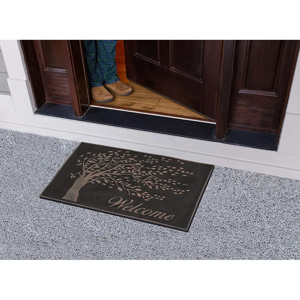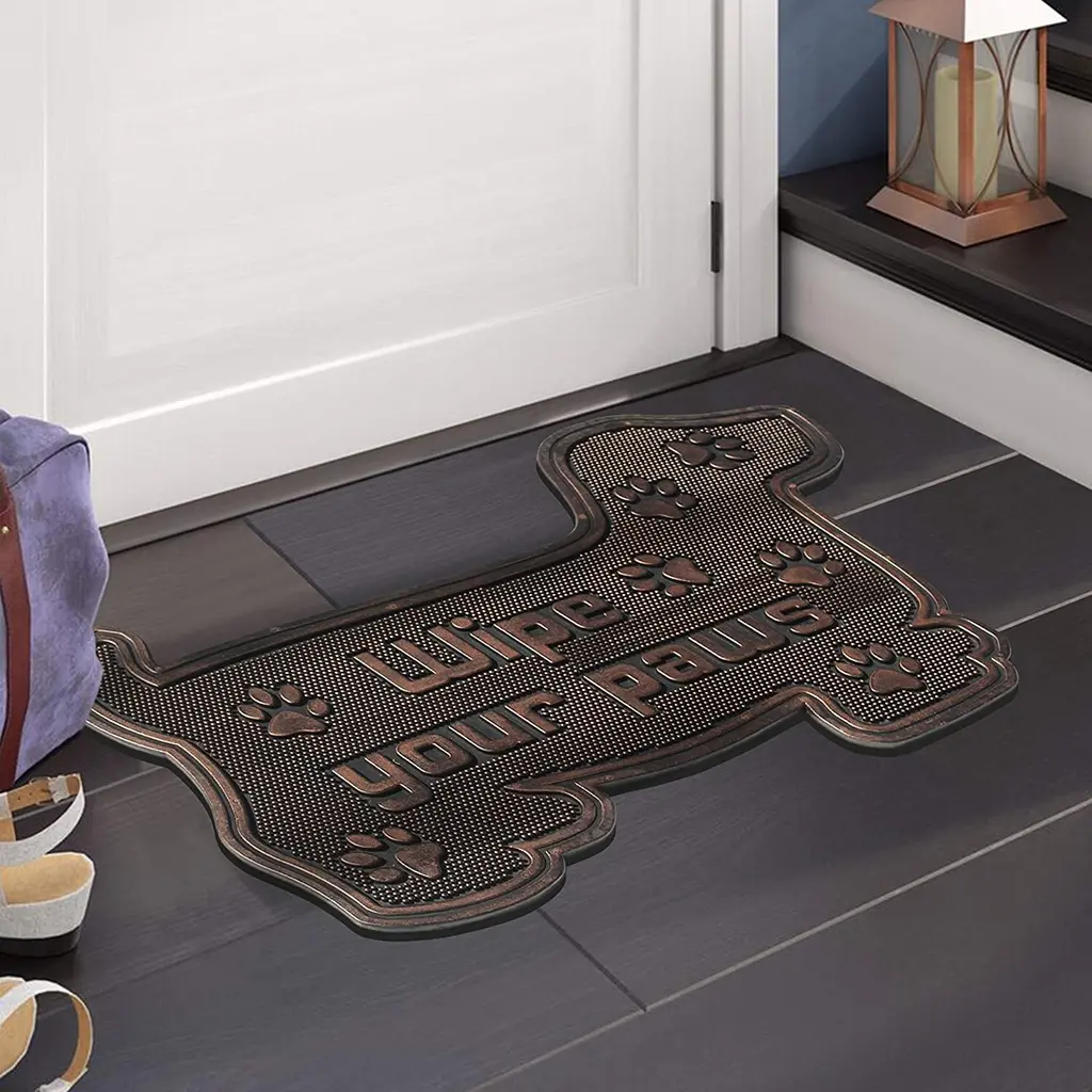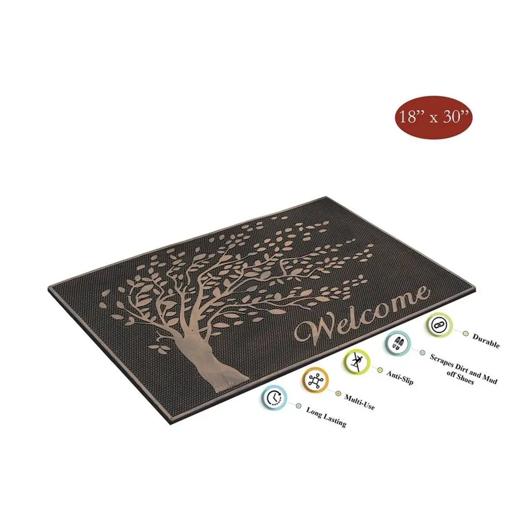This stylish and unique doormat makes a perfectly fun addition to any porch, patio area or door. Use this mat to catch dirt as your guests enter your home or as decoration to show off your love of felines. This door mat withstands seasonal changes and can be used outside all year long. This transitional style copper and black rubber door mat is the perfect way to spruce up your floors and home décor while maintaining a level of practicality.