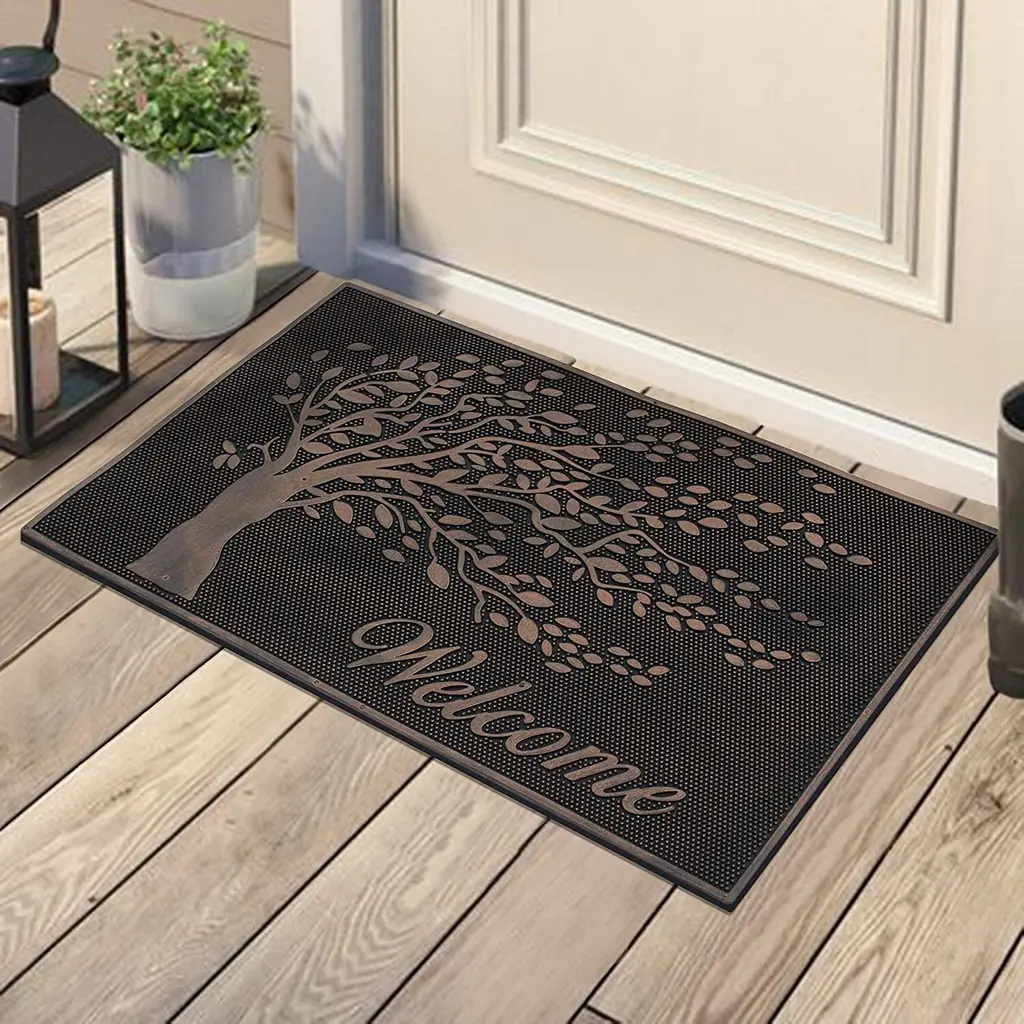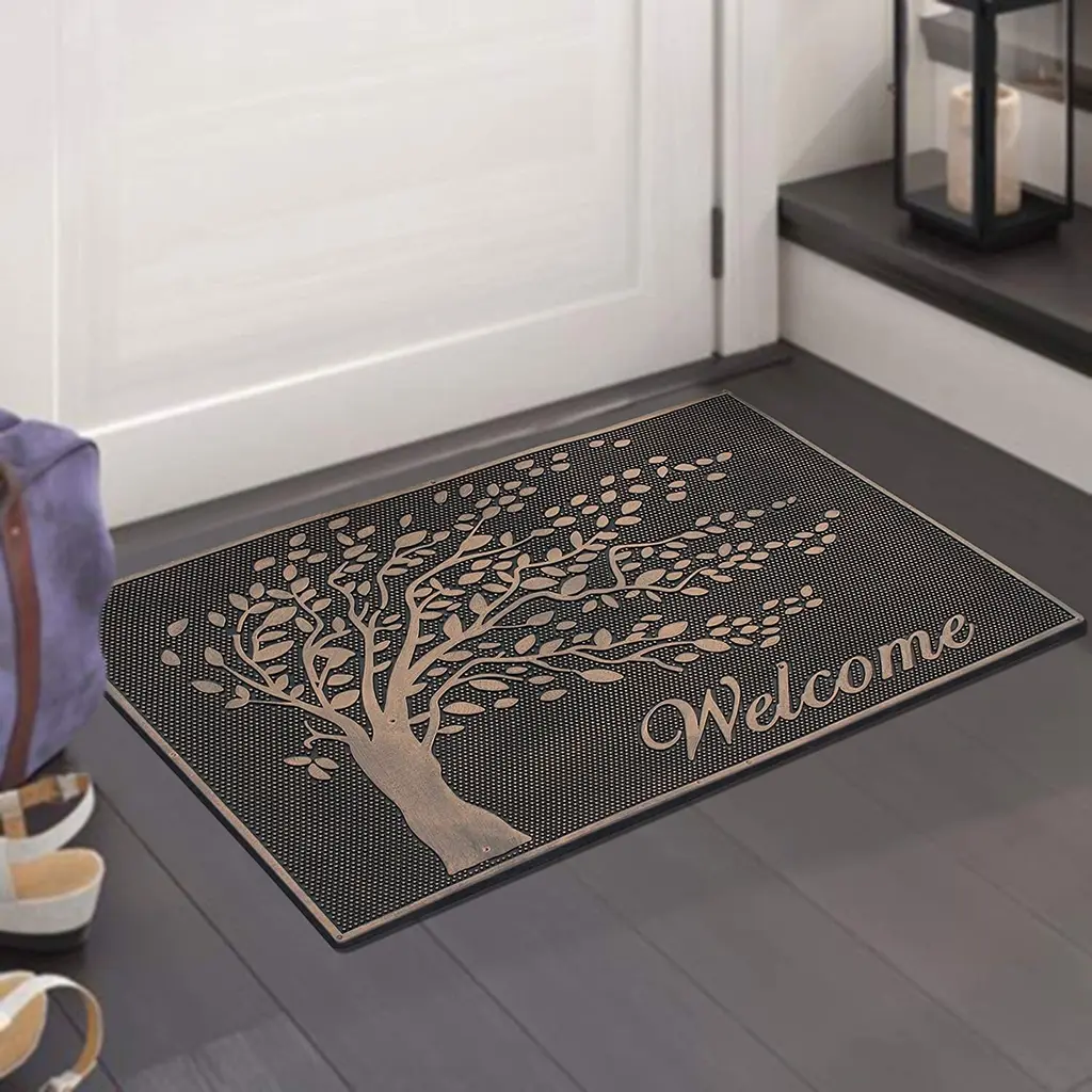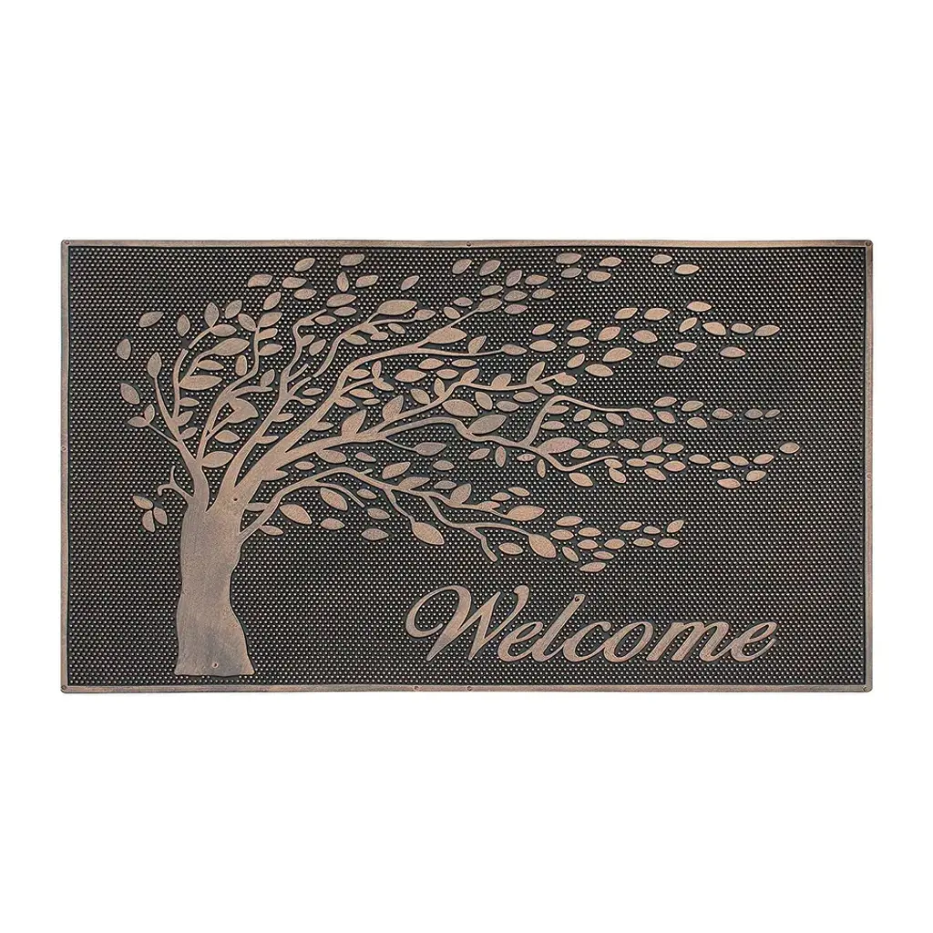 This stylish and unique doormat makes a perfectly fun addition to any porch, patio area or door. Use this mat to catch dirt as your guests enter your home or as decoration to show off your love of felines. This door mat withstands seasonal changes and can be used outside all year long. This transitional style copper and black rubber door mat is the perfect way to spruce up your floors and home décor while maintaining a level of practicality.