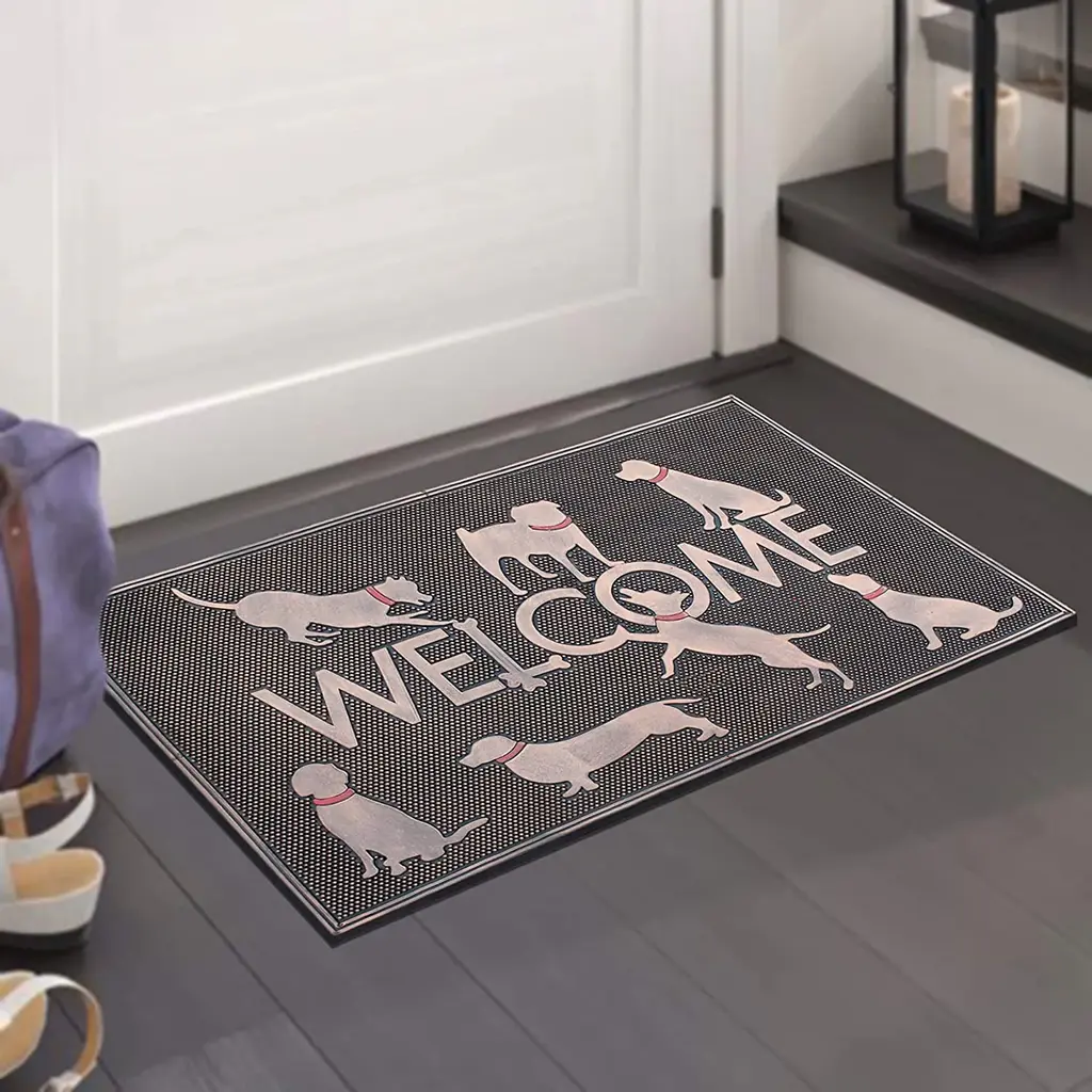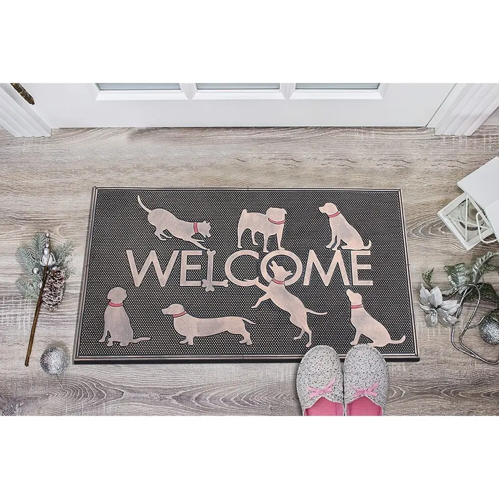 A1hc Rubber Pin 18” X 30” For Outdoor Entrance, Fun Designed Floor, Welcome Mats For Front Door Indoor Non-Slip Backing - Wipe You Paws Dog Shape