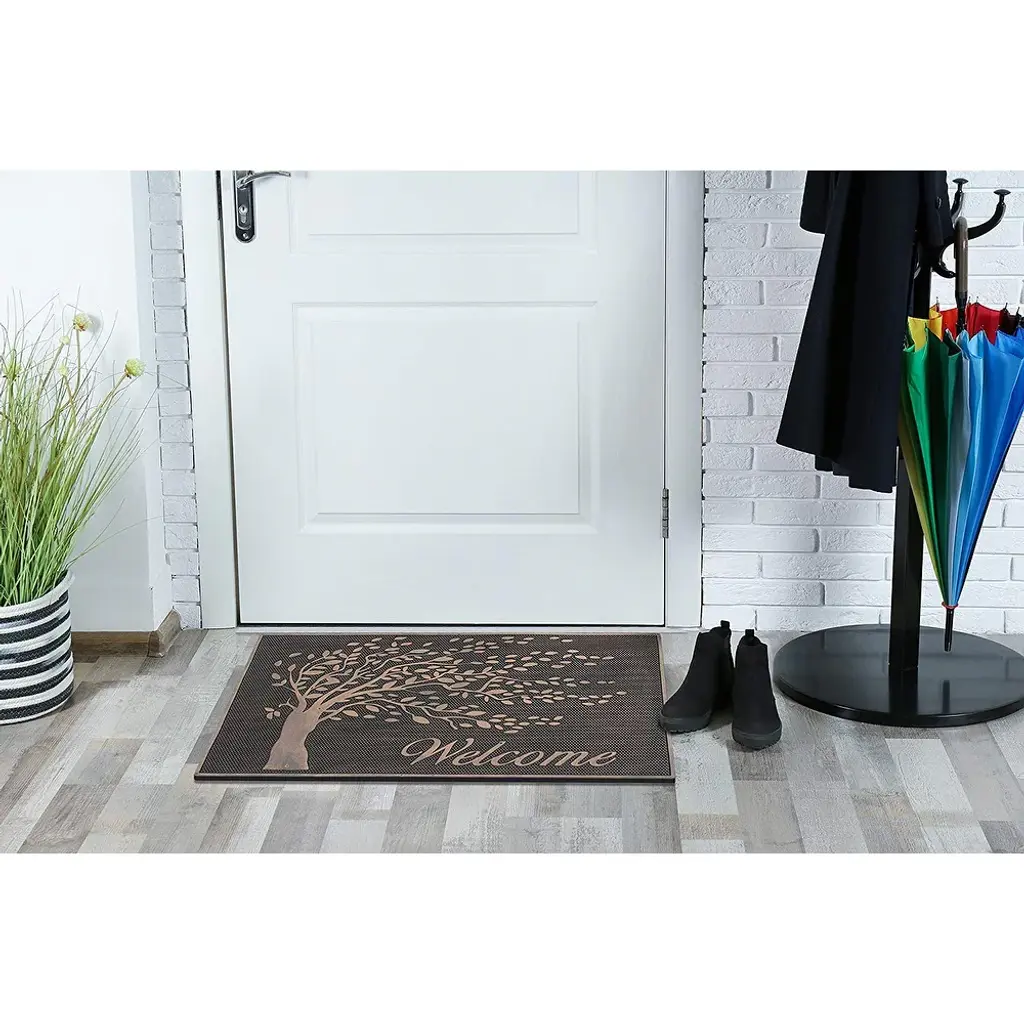This stylish and unique doormat makes a perfectly fun addition to any porch, patio area or door. Use this mat to catch dirt as your guests enter your home or as decoration to show off your love of felines. This door mat withstands seasonal changes and can be used outside all year long. This transitional style copper and black rubber door mat is the perfect way to spruce up your floors and home décor while maintaining a level of practicality.
