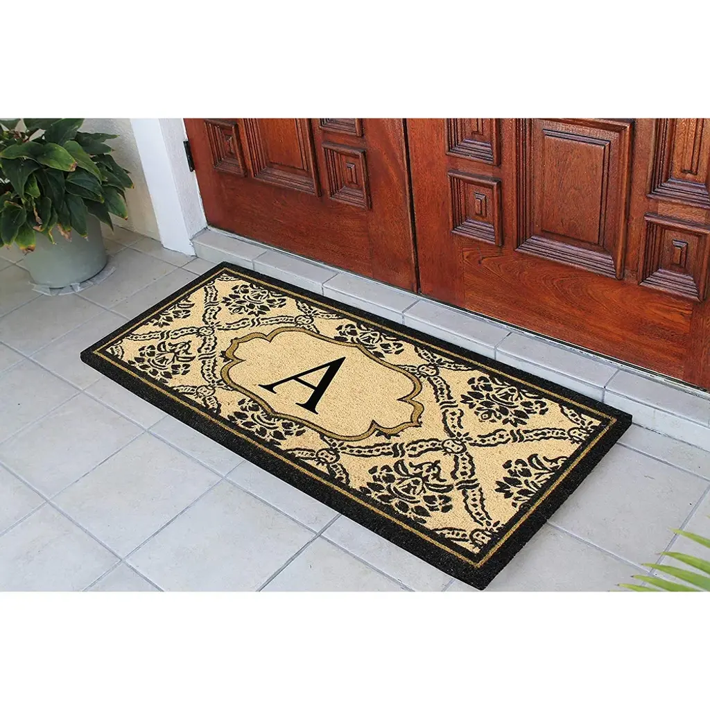 Add an excellent decorative accent to your doorway or entrance with this X-Large monogrammed doormat. Featuring all the letters of the alphabet, this mat helps remove dirt, debris and moisture from the soles of your shoes. Flexible coir bristles are robust and durable for a good scrub result. This mat provides exceptional brushing action on footwear with excellent water absorption. This doormat is X Large and covers the double door entrance perfectly.