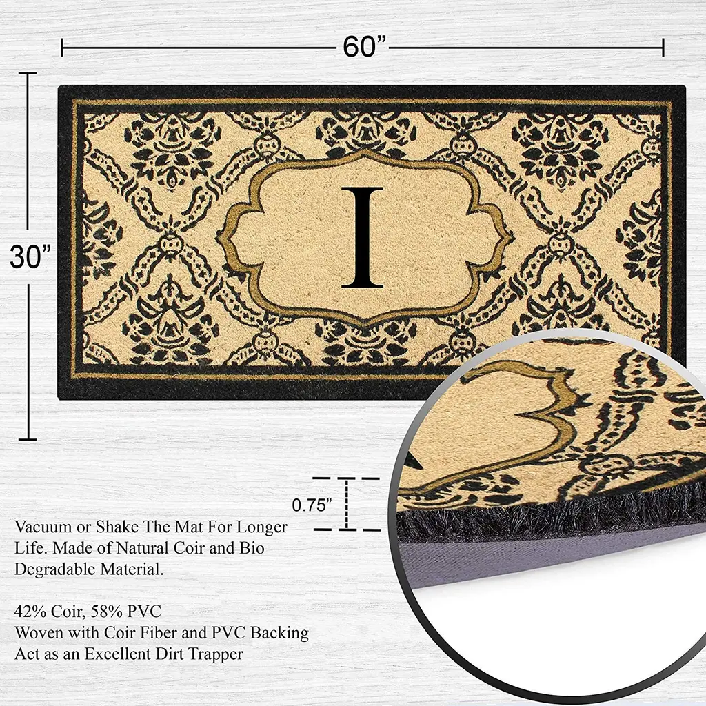 Add an excellent decorative accent to your doorway or entrance with this X-Large monogrammed doormat. Featuring all the letters of the alphabet, this mat helps remove dirt, debris and moisture from the soles of your shoes. Flexible coir bristles are robust and durable for a good scrub result. This mat provides exceptional brushing action on footwear with excellent water absorption. This doormat is X Large and covers the double door entrance perfectly.