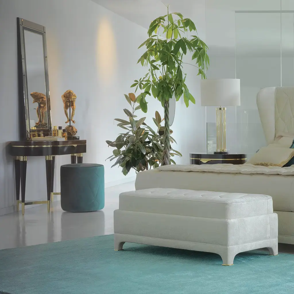 Part of a collection of exquisite furniture pieces made of ebony and boasting a bold character and timeless sophistication, this console features six legs painted in dark ebony, combined three by three, and connected with an insert in Corteccia marble cast in brass. The same noble materials occurs in details at the top and bottom of the legs and to separate the ebony wood structure from the top in striking ziricote, whose large and uniquely shaped grain adds a one-of-a-kind decorative element to the piece.