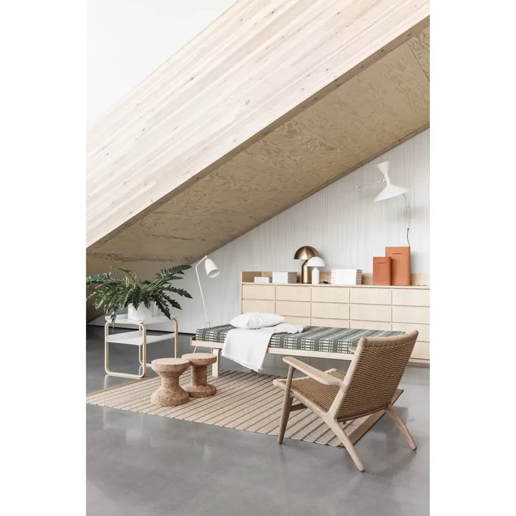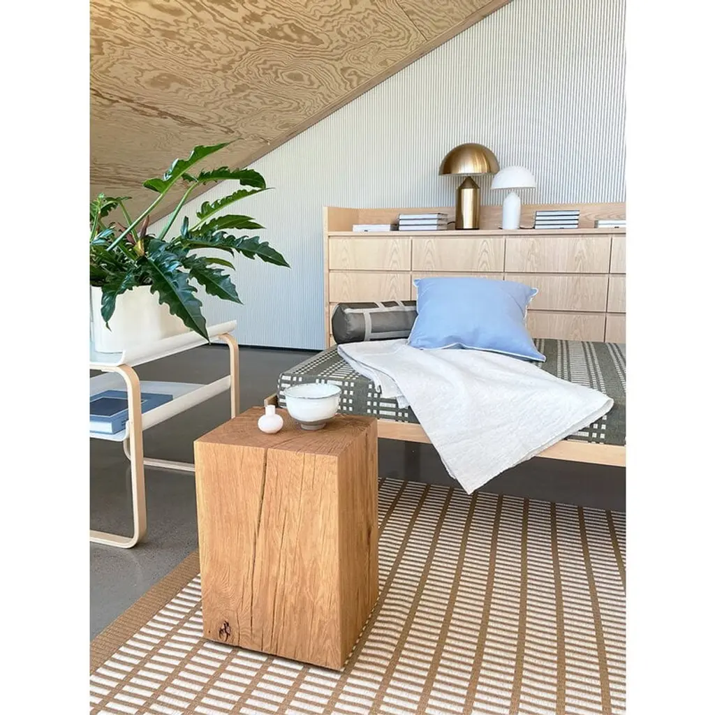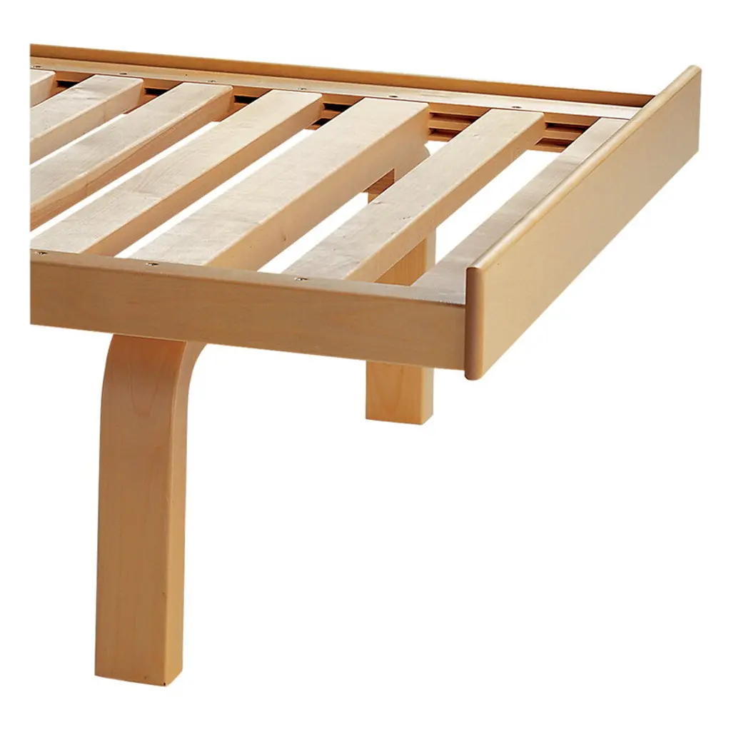 Artek’s day bed 710 is a versatile bed designed by Alvar Aalto in 1933. Like many of Aalto's furniture pieces, the day bed 710 features the famous L-leg structure developed by Aalto: the birch wood frame and slatted base rest on low legs bent into a shape of L. The light color and strong structure of birch make the day bed 710 a perfect minimalist sofa, catnapping place or guest bed. Please note that the package only includes a wooden daybed frame. You may complement it with a mattress of your liking or order the mattress and its covers from our webshop. In addition, you can contact our Customer Service to purchase separate back cushions that transform the daybed into a sofa. Both the mattress and the cushions can be upholstered with Artek fabrics; please contact our Customer Service for further details on the upholstery options.