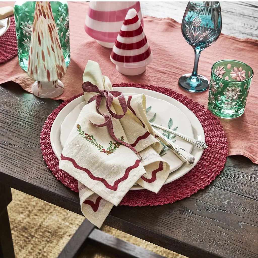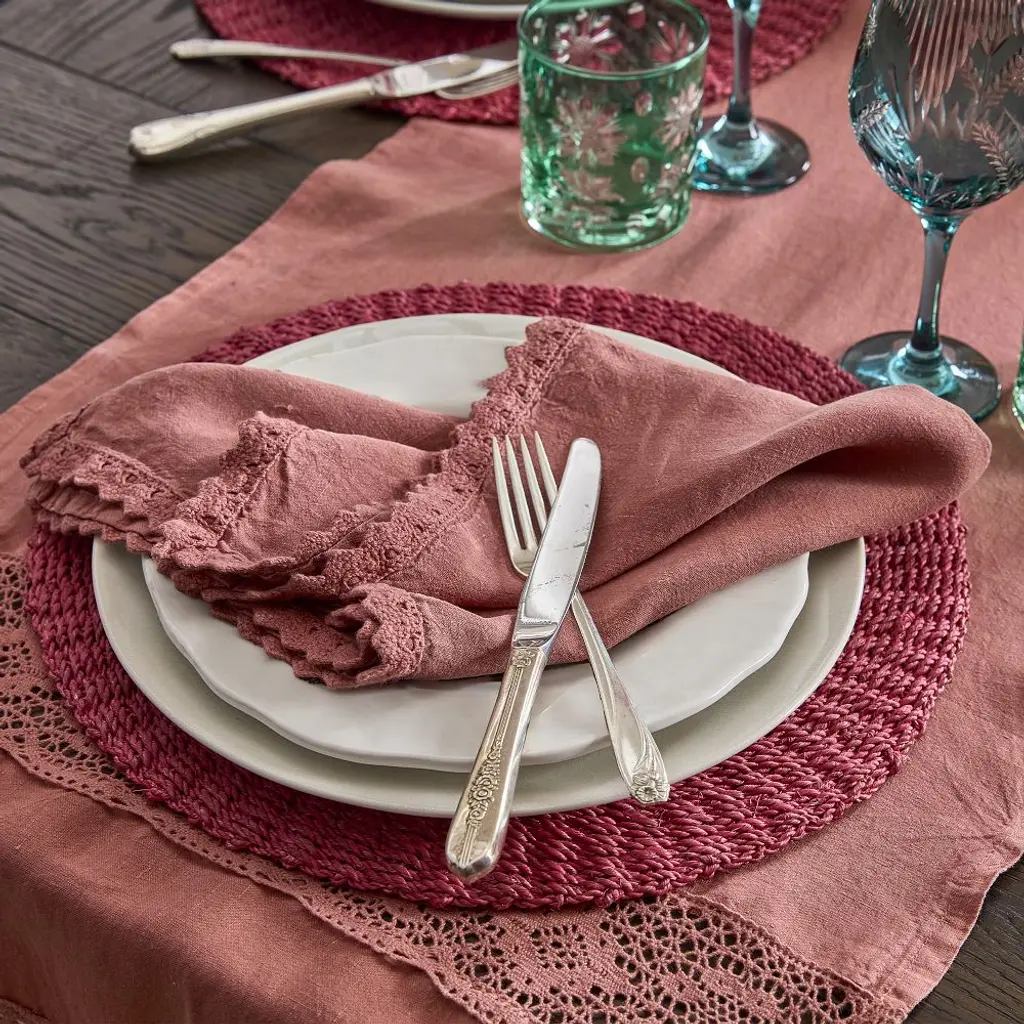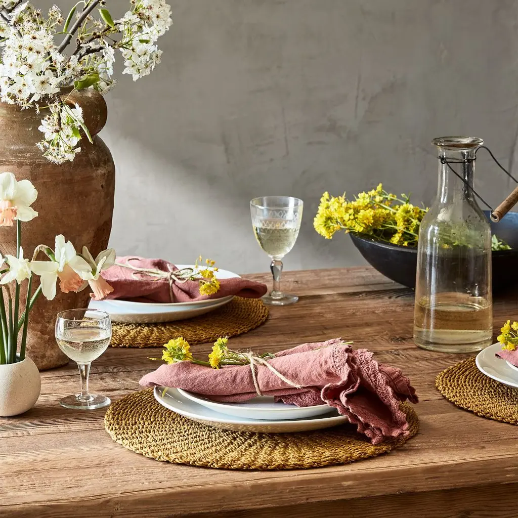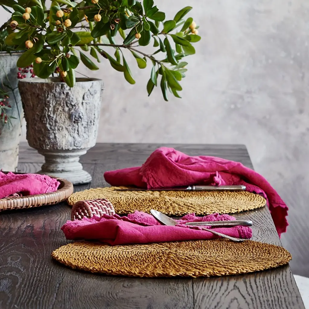 Made to mix and match. Handwoven from 100% abaca rope in a versatile round shape, these placemats bring happy hues to the table. For any occasion, big or small.