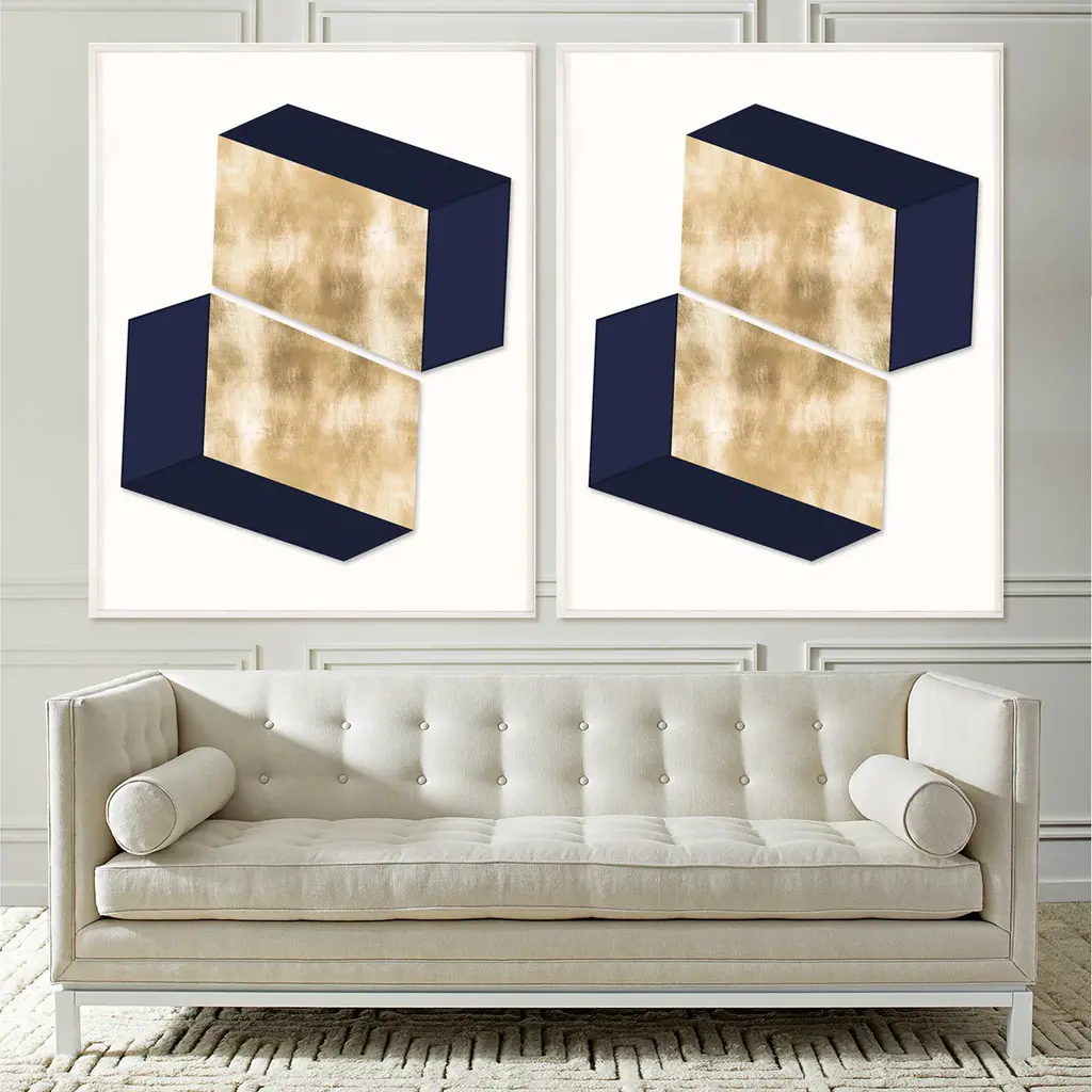 Two beautifully gold leafed geometric shapes, giving the piece depth and dimension. Not eligible for discount