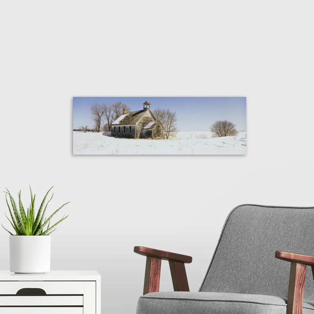 Abandoned Schoolhouse On A Snow-Covered Landscape, Friberg Township, Minnesota