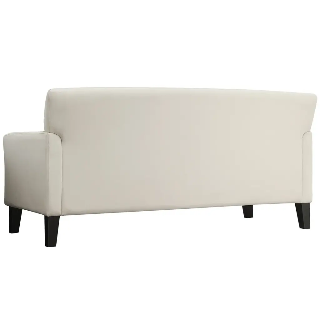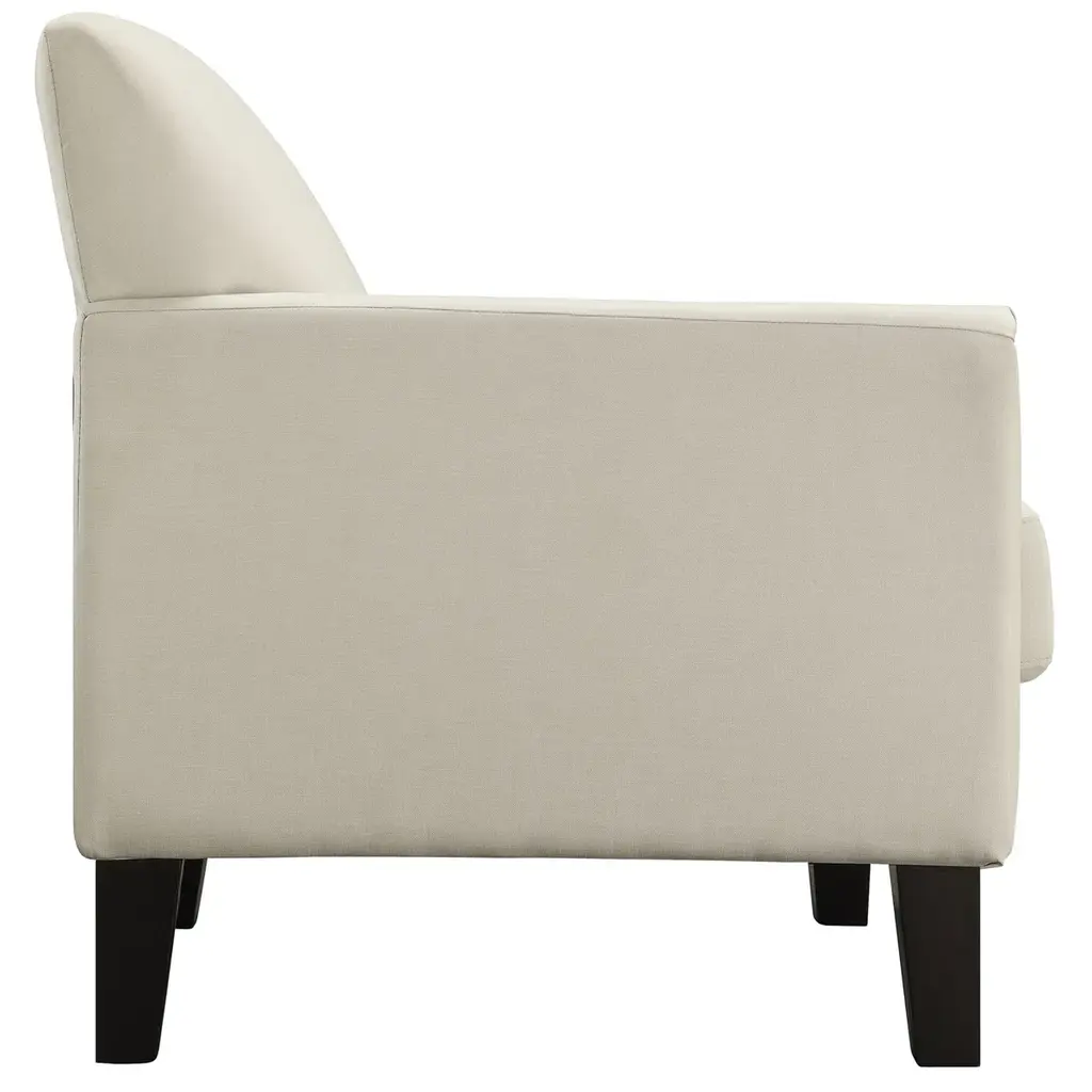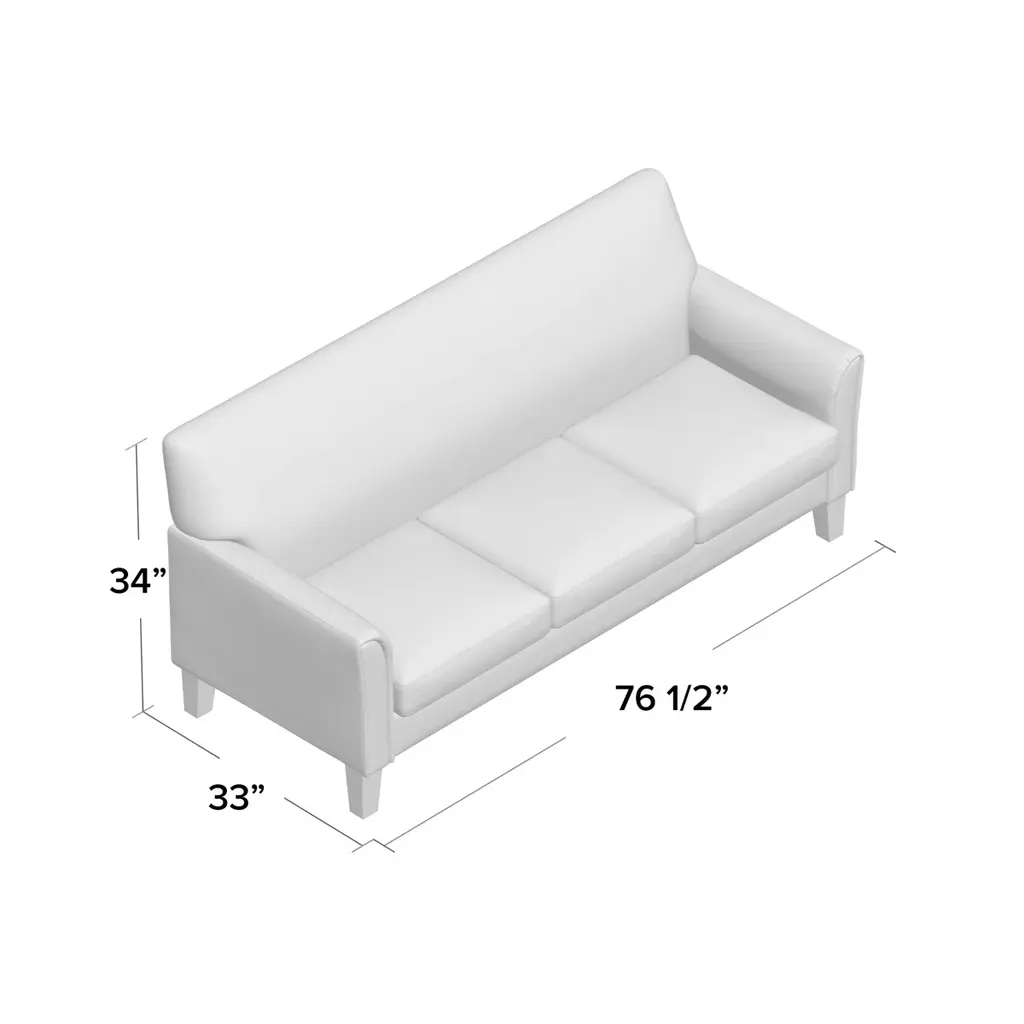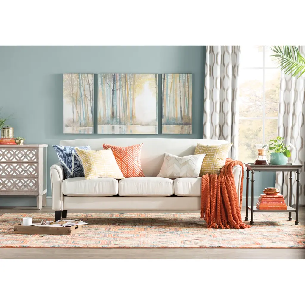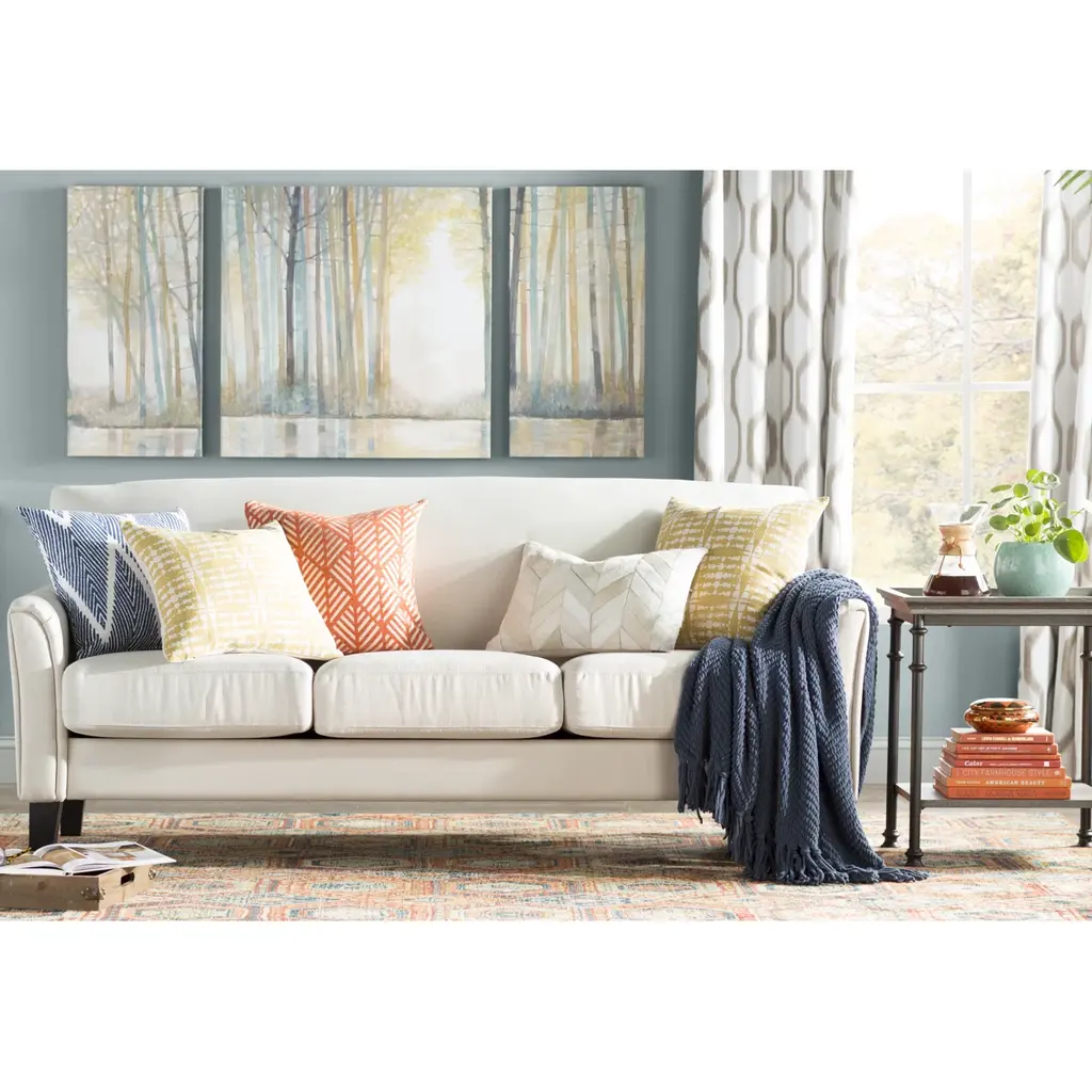 About This Product This sofa grounds your living room in a classic yet modern style. It's crafted with a solid wood frame that rests on solid wood tapered legs with an espresso hue. This couch is wrapped in polyester blend in a soft neutral tone. The foam-filled cushions support you as you relax. We love how the flared arms and cushion back lend this sofa a traditional silhouette. To care for it, spot clean with a damp cloth. Not Included: Toss Pillow(s) Features Includes one (1) sofa Flared arms Loose, removable seat cushions Solid cushioned back Wood grain finish on feet