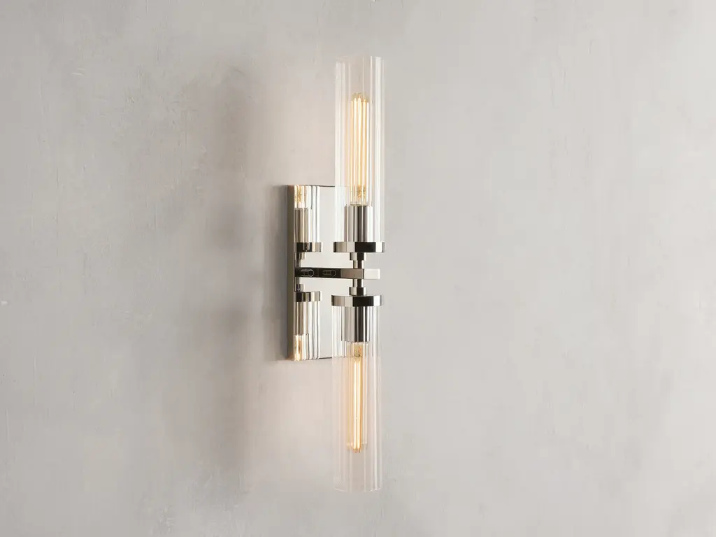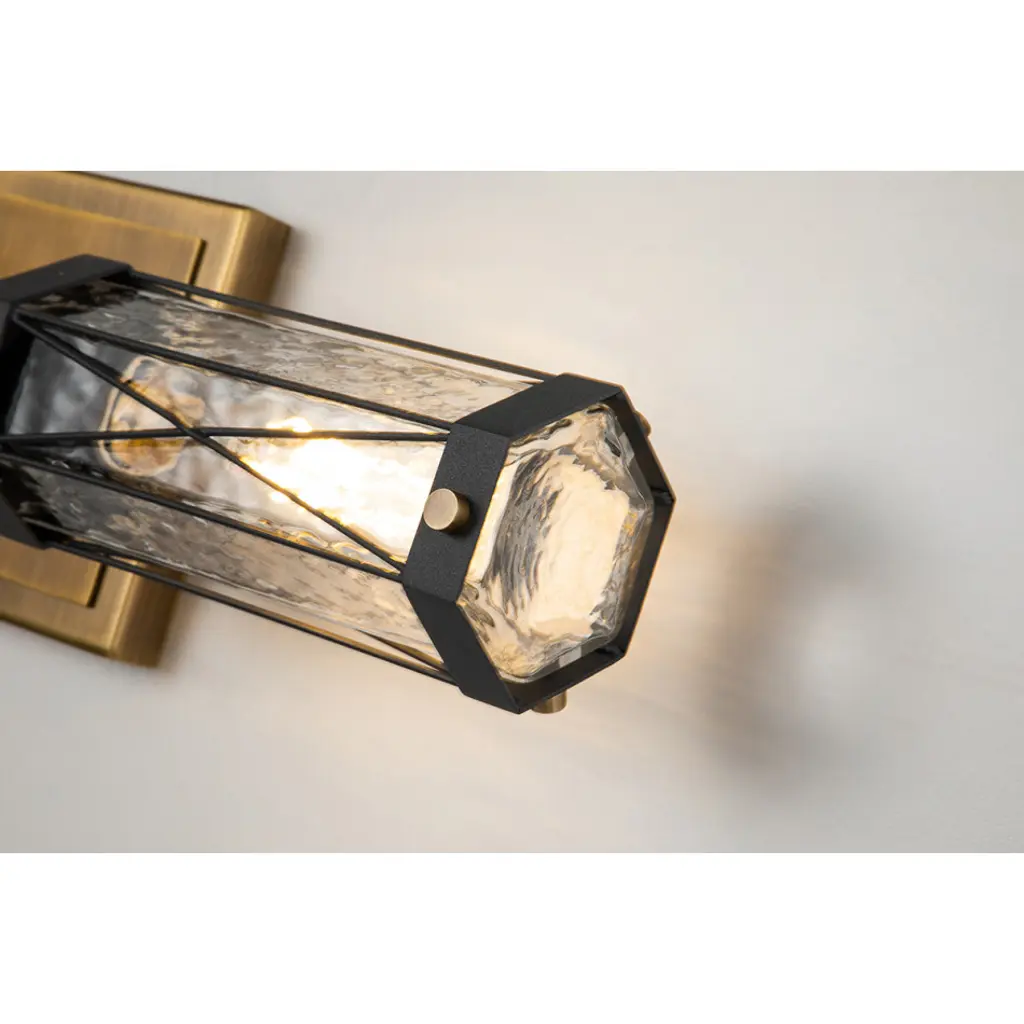 Charming and vintage inspired, the Abbey Over-the-mirror vanity light uses a mixed aged brass and black finish to give a genuine and edgy style that makes sure you won’t forget it. It’s shaped like a hexagon and has a bold-looking X alternating pattern on the water glass allowing these elements to work together providing this fixture with its own distinctive style. Whether mounted above or along side a mirror, this two-light cylinder shaped wall light, gives off the perfect amount of light for beauty and function.