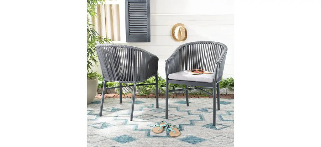 Bring sophistication to any outdoor living space with this set of contemporary Abdul rope chairs. Constructed of gray nylon rope and rattan, its monochromatic look is completed with a stylish gray cushion.