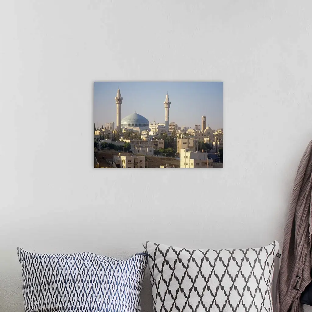 Abdullah Mosque and the Amman skyline at dusk, Jordan, Middle East wall art for home and office decor. Discover canvas art prints, photos, mural, big canvas art and framed wall art in GreatBigCanvas.com's varied collections.