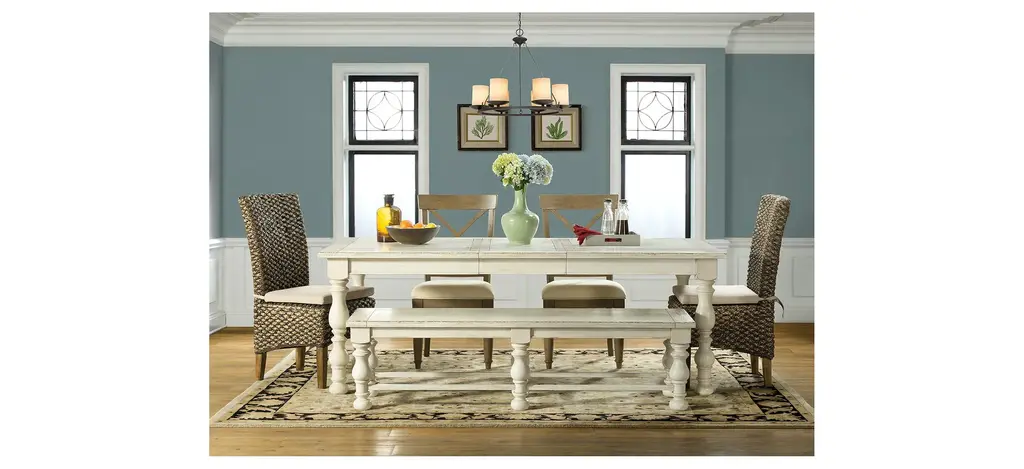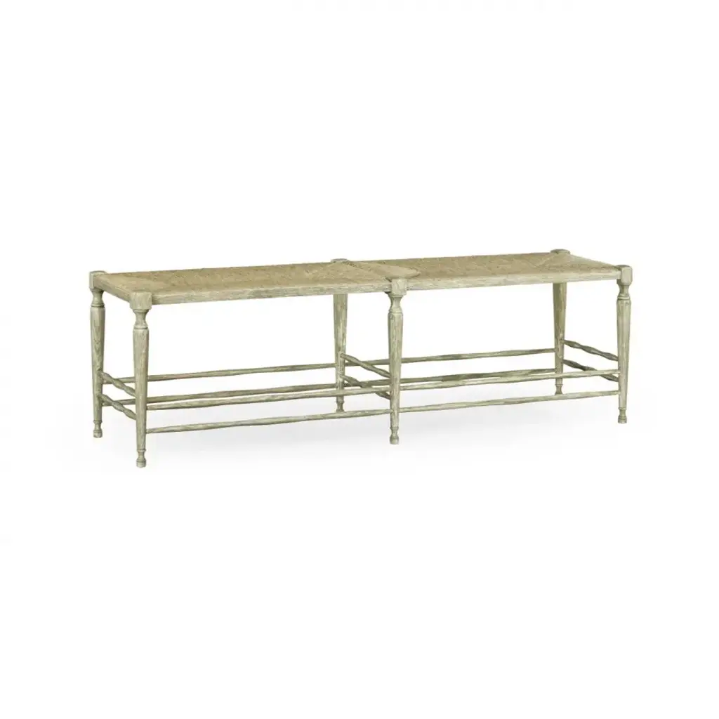 The Aberdeen bench is a very relaxed and casual piece with a play on design features drawn from antique, coastal cottage furnishings and architectural elements. The scrubbed, weathered white finish on wire-brushed ash veneers and hardwood solids is physically hand-distressed for a timeless, age-worn appearance.