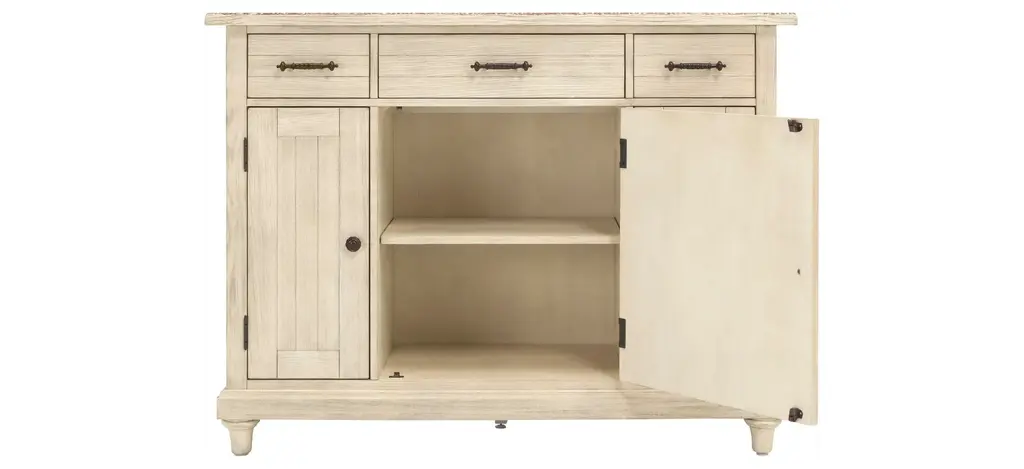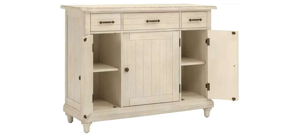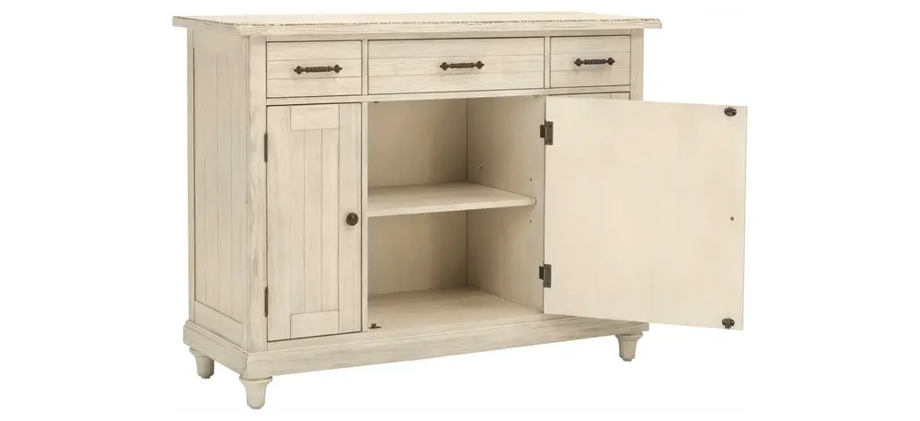 If you're looking for something with a casual cottage vibe, you'll love the Aberdeen server. This piece is a stunning example of a country casual retreat at its finest. The distressed wood finish offers worry-free care, so you can focus on entertaining instead of dings and scratches. Topped off with features like the plank-style top, the Aberdeen server creates a charming dining experience.
